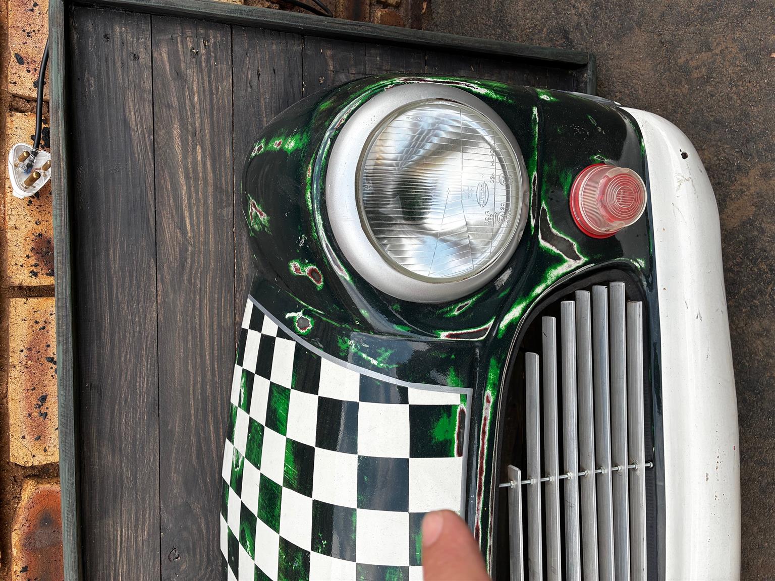 Mini Austin Wall Art display Leyland cooper classic Front end decorative wall hanging on wood with lights Man Cave Museum piece looks awesome as per pictures.