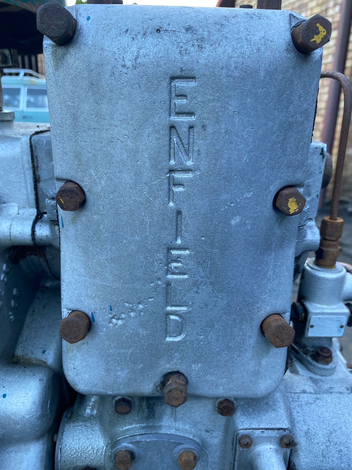 Stationary Engine Enfield Industrial Engine LTD diesel type VSMK1 manufacted in Redditch England from Aluminium patented very scarce & rare example division of Royal Enfield, as per pictures Engine turns ready for restoration. Tag water pump museum Man Cave display vintage classic old.