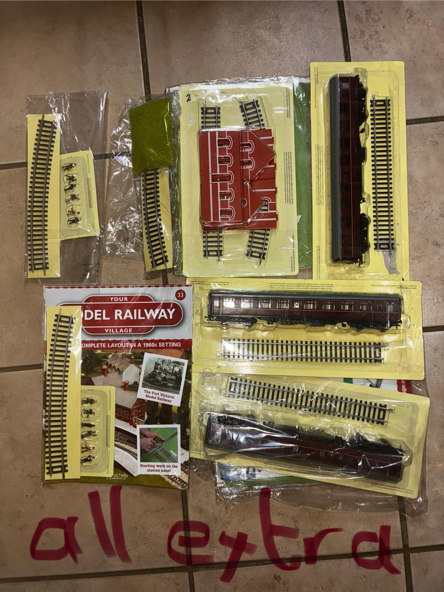 Train set Hobby your model Railway Village all parts complete kit issue 1 to 120 with lots of additional & extra parts & special editions as per pictures also included is a Bachnam LMS Fwler 3F Jinty locomotive worth R3K also have 1 extra issue 2 (Station building & track) and extra issue 1 (carriage & track) all in BRAND NEW condition Tags: Partworks collectables Hadette 1960's setting build your complete track town layout R9999.
