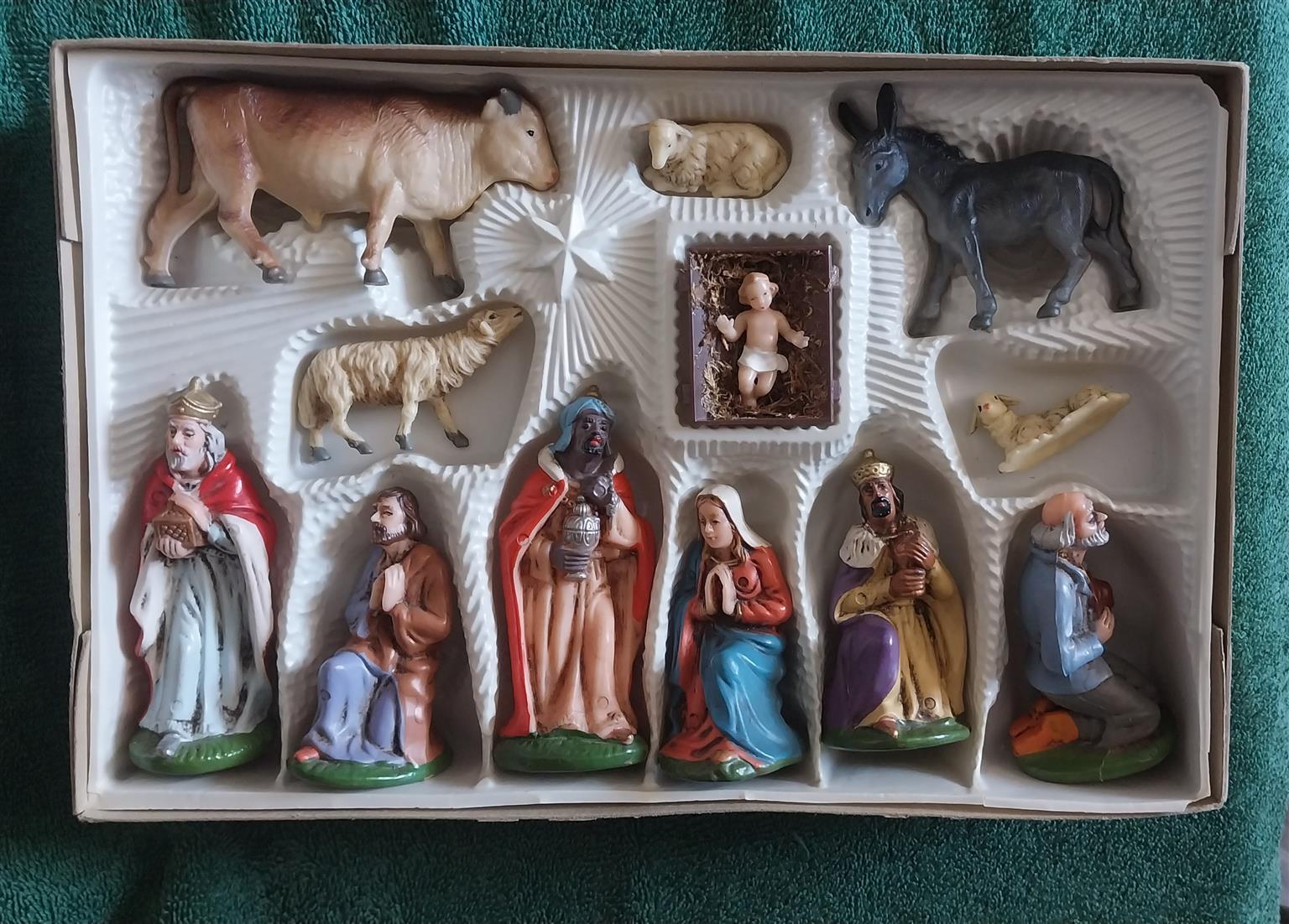 Twelve piece nativity set, with handpainted figurines, made in Germany