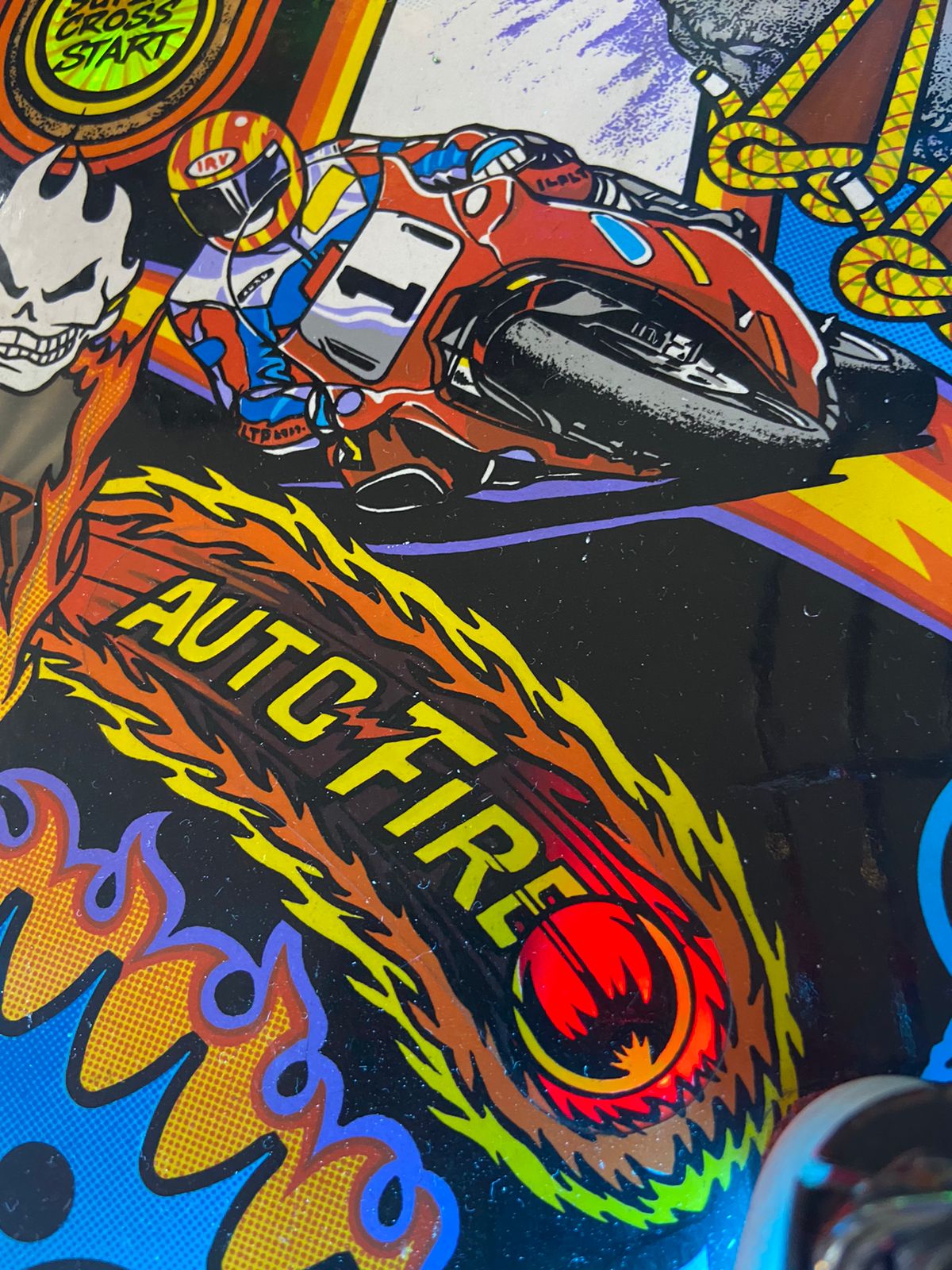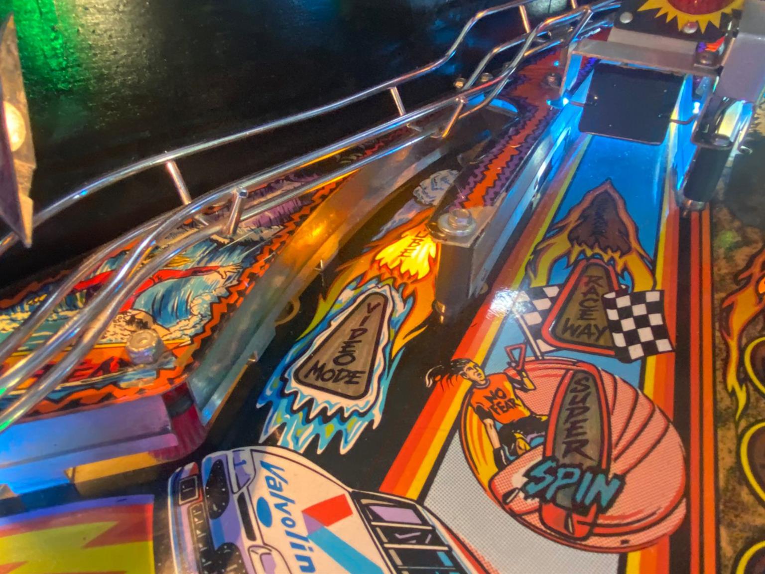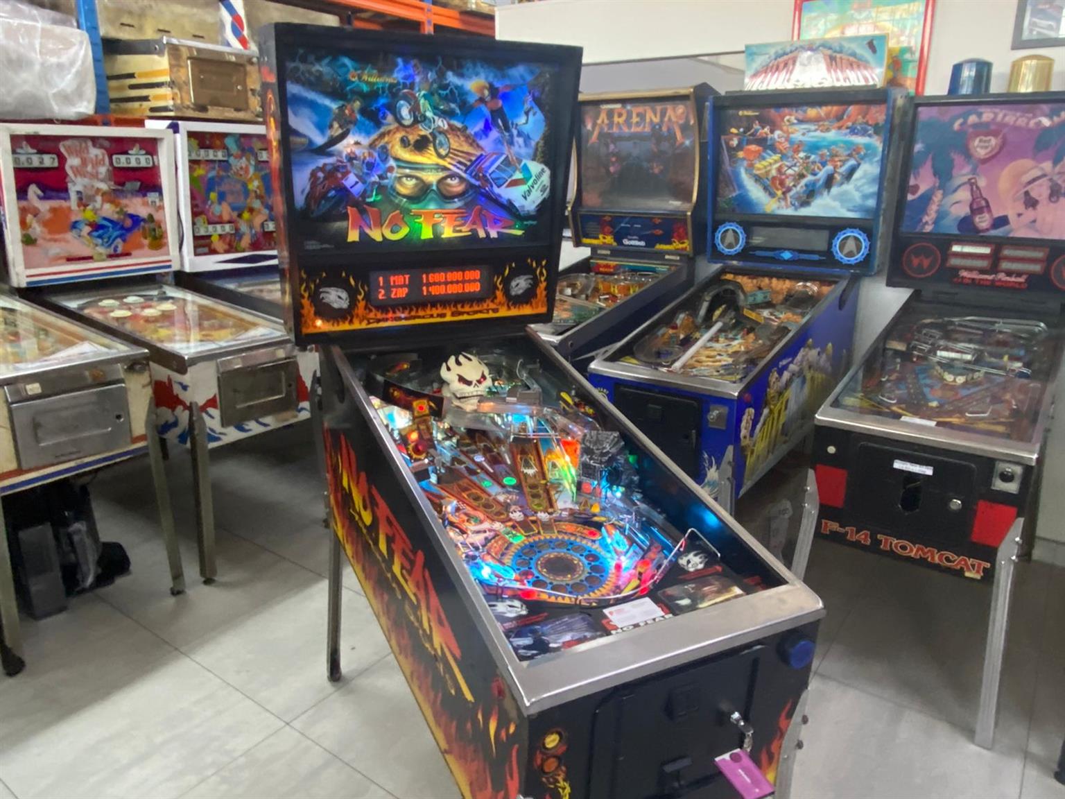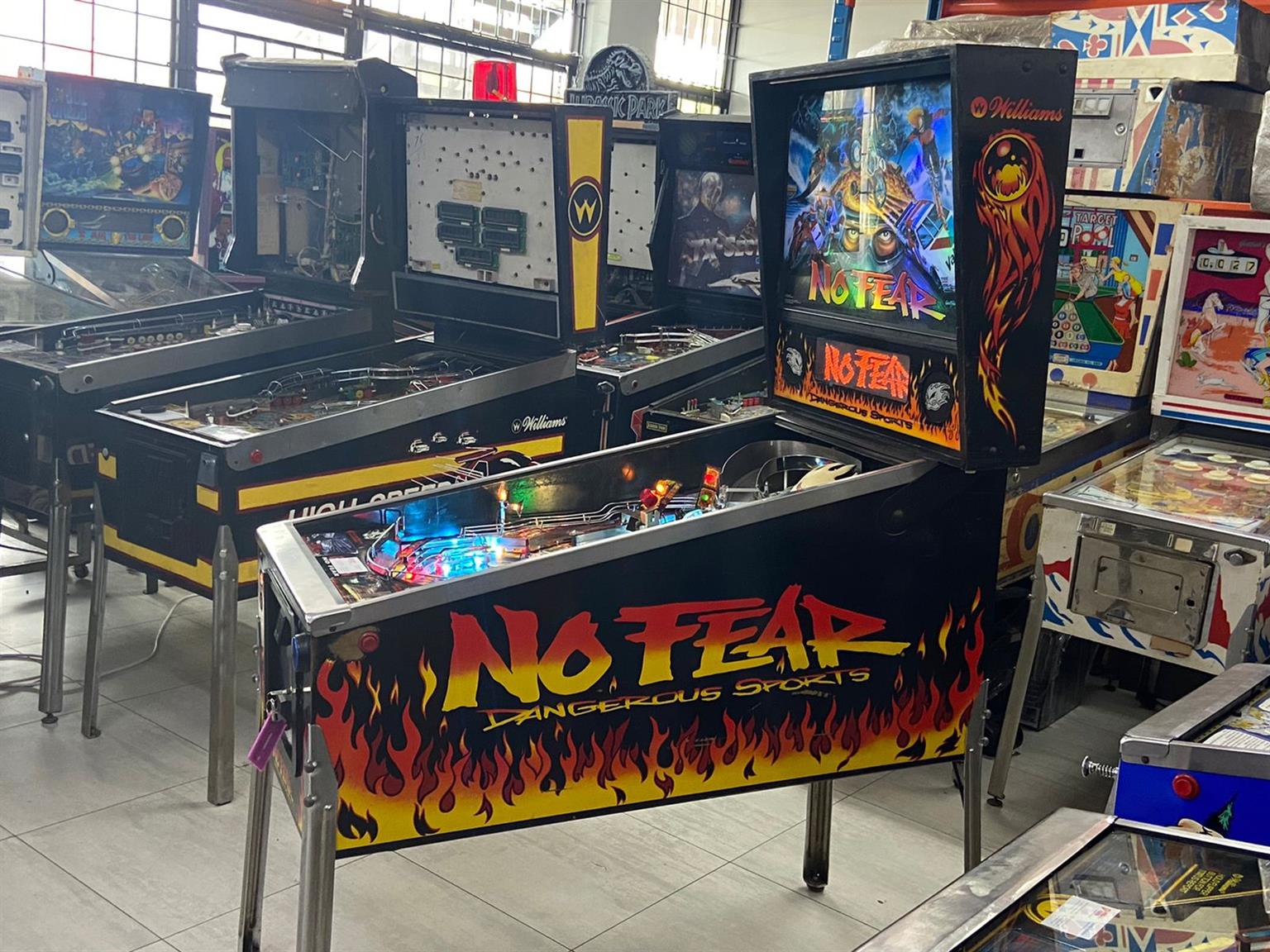 No Fear: Dangerous Sports is a pinball machine from May 1995, manufactured by Williams Electronic Games, Inc. Just over 4500 units manufactured back in 1995. Very exciting theme, great fun to play.