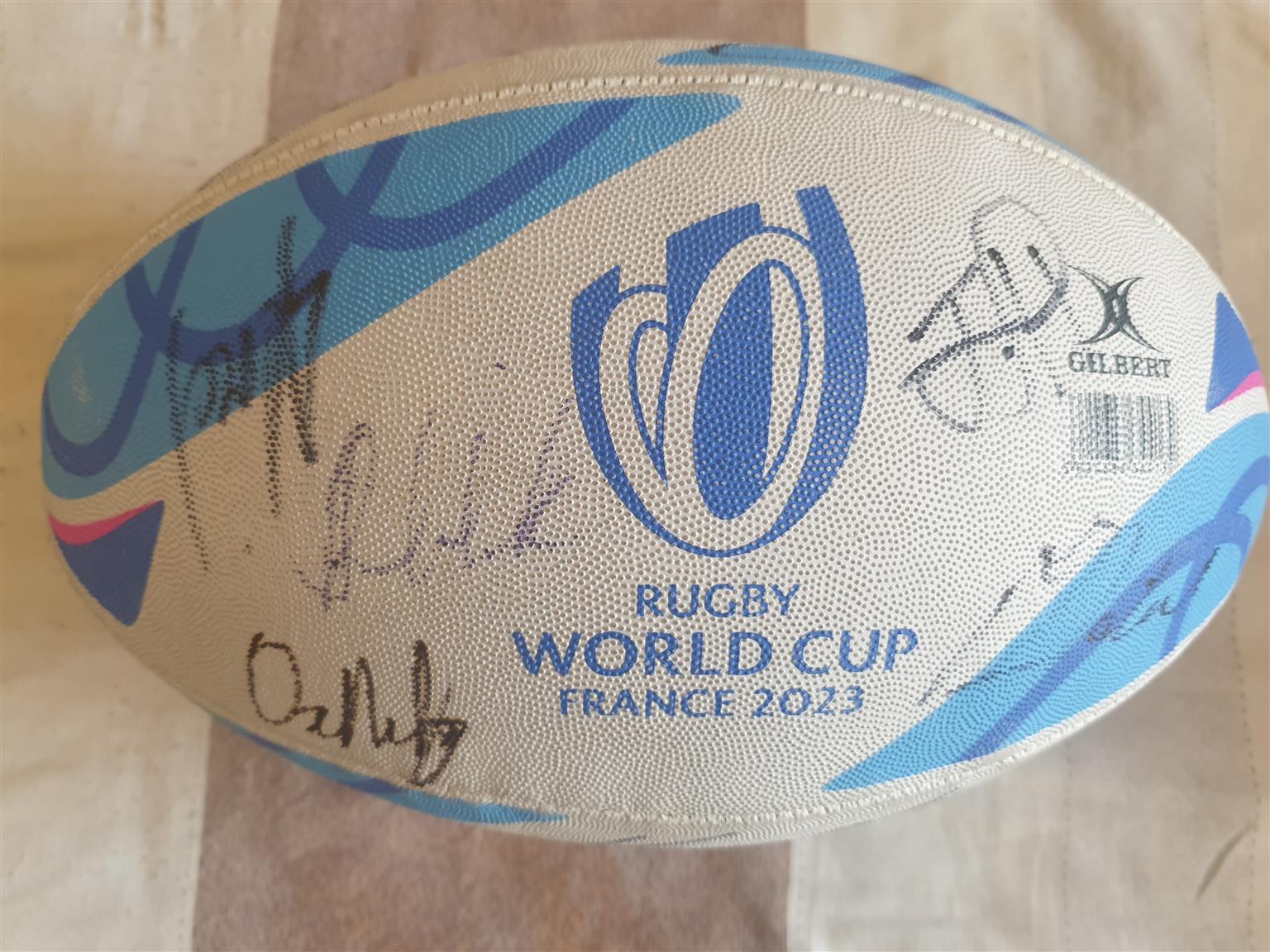 Rugby World cup 2023 ball signed by Springboks during the send-off to France.