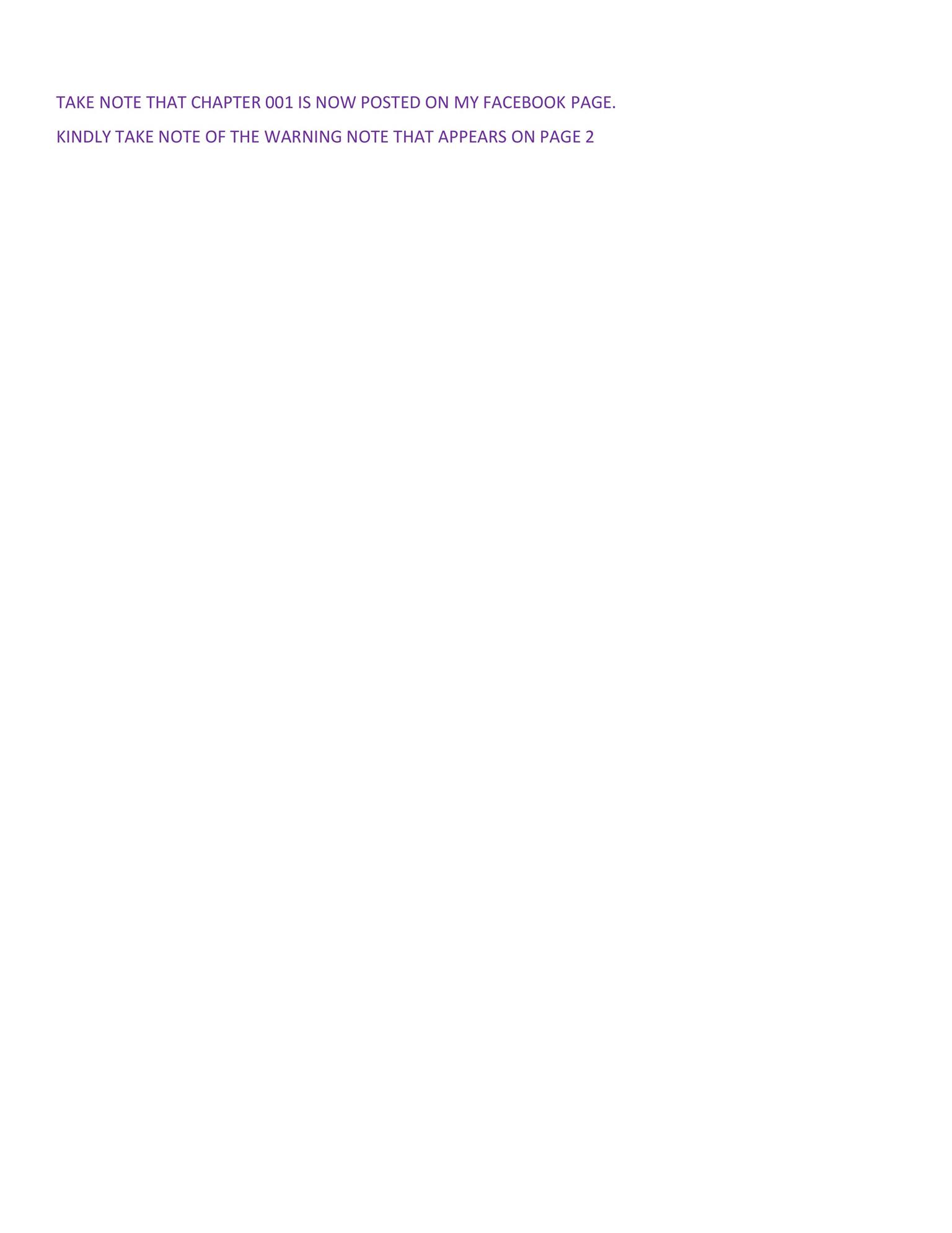 UPDATE ON 10/07/23: Kindly be advised that Chapter 001 of this book is now posted on my facebook page for free public use by the authorized people. God Bless.