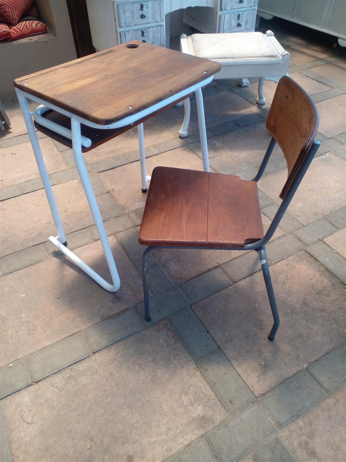 Vintage rare single School Desk with matching Chair. Refurbished