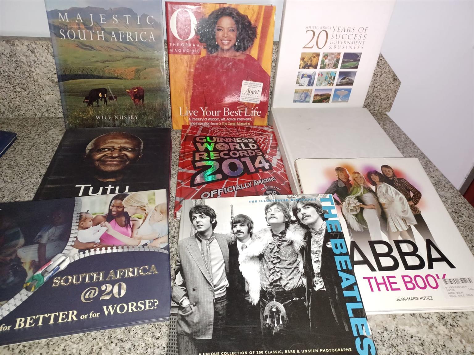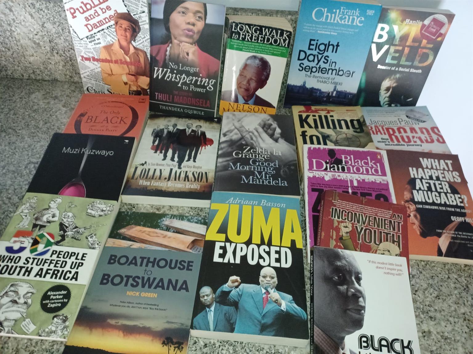 Novels; fiction; non fiction; autobiographies; albums. Hard and soft cover. 100's to choose from. All in good condition.