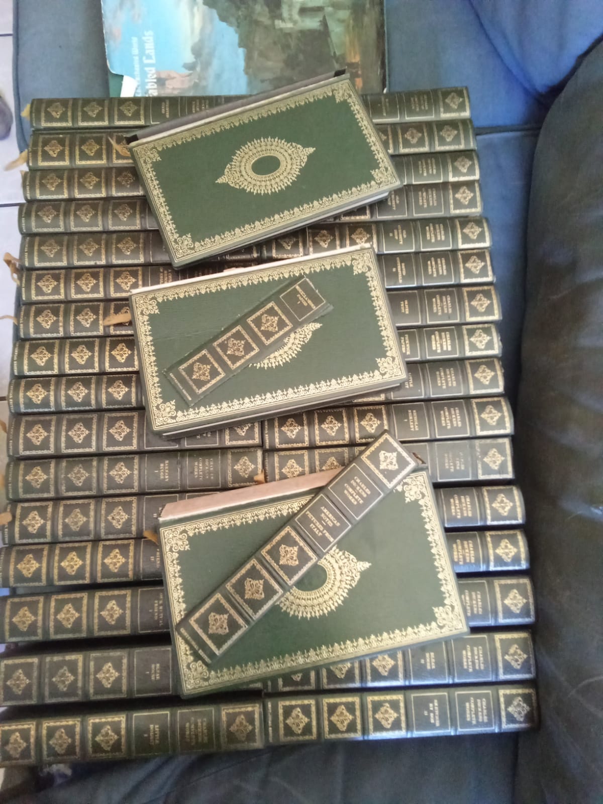 All books are in fair to good condition. Most have not been read. On 4 of the books the decorated boards on the spine are coming lose or have came off, and on one the top half is missing.