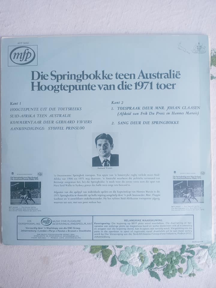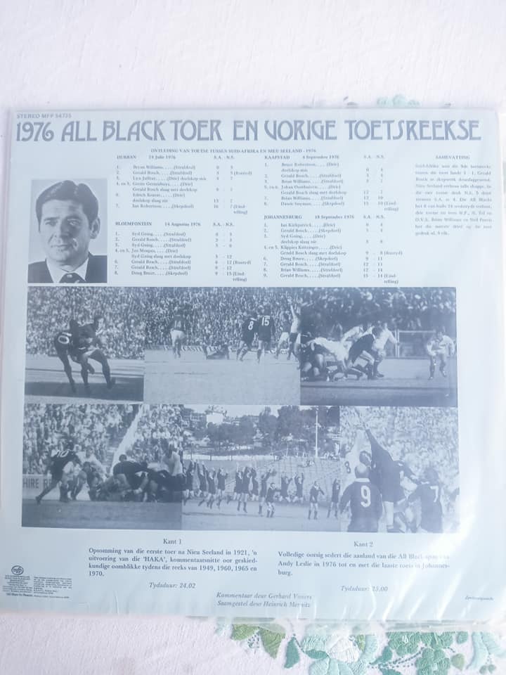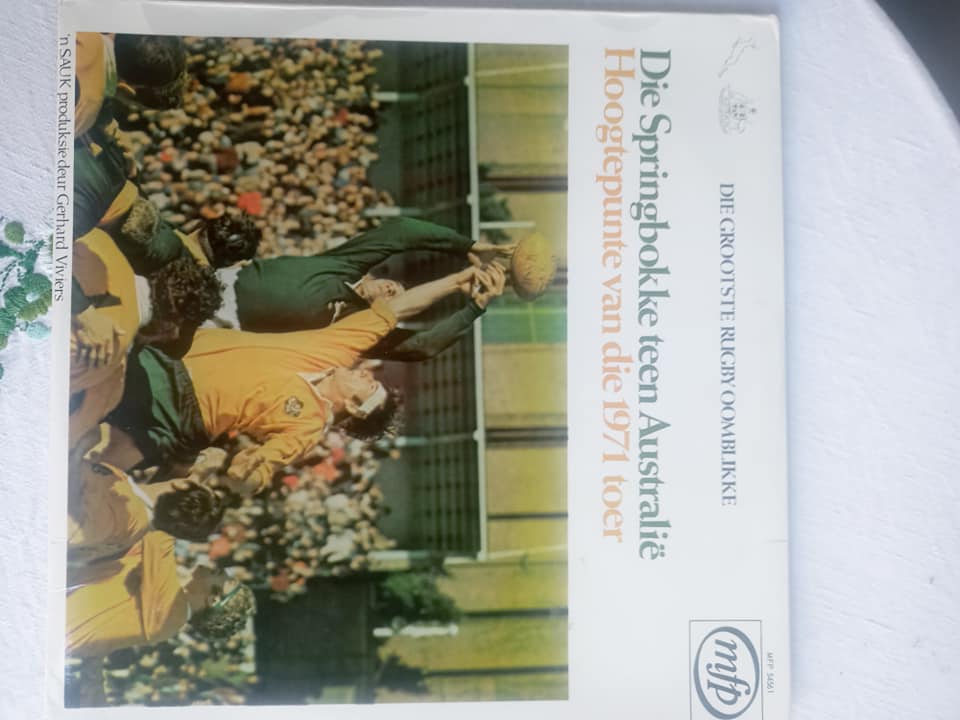 Hi almal, help asb. met waarde want ek wil hulle verkoop? Twee dubbel LP's is hoogtepunte van SA rugby, krieket, boks en atletiek en twee enkel LP's van Springbok rugby toere. Plate en omhulsels in mint kondisie. Allblack toer LP onoopgemaak.