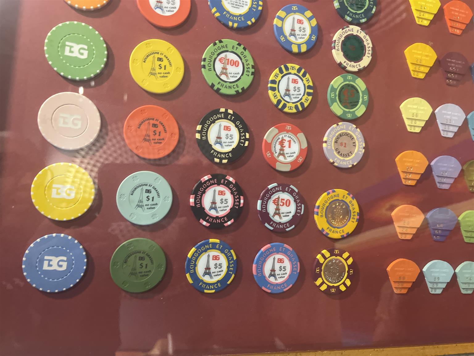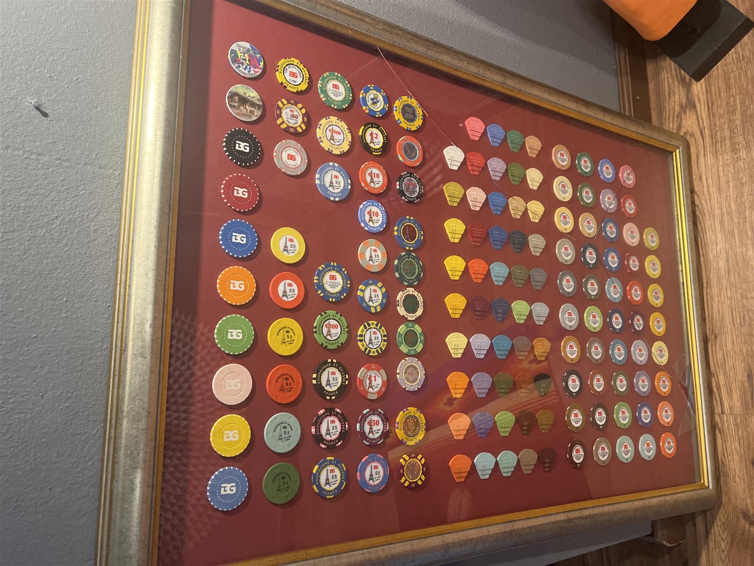 Gambling chip collection 150 items mounted various stunning for display . More details: