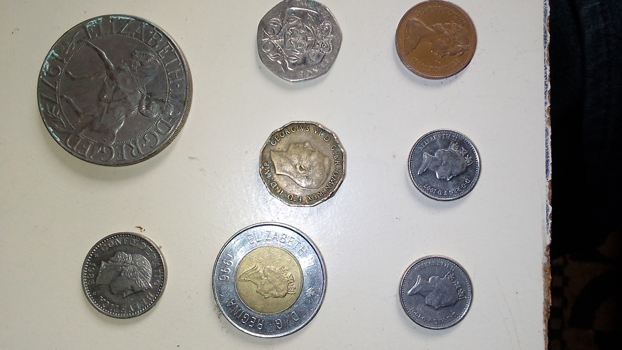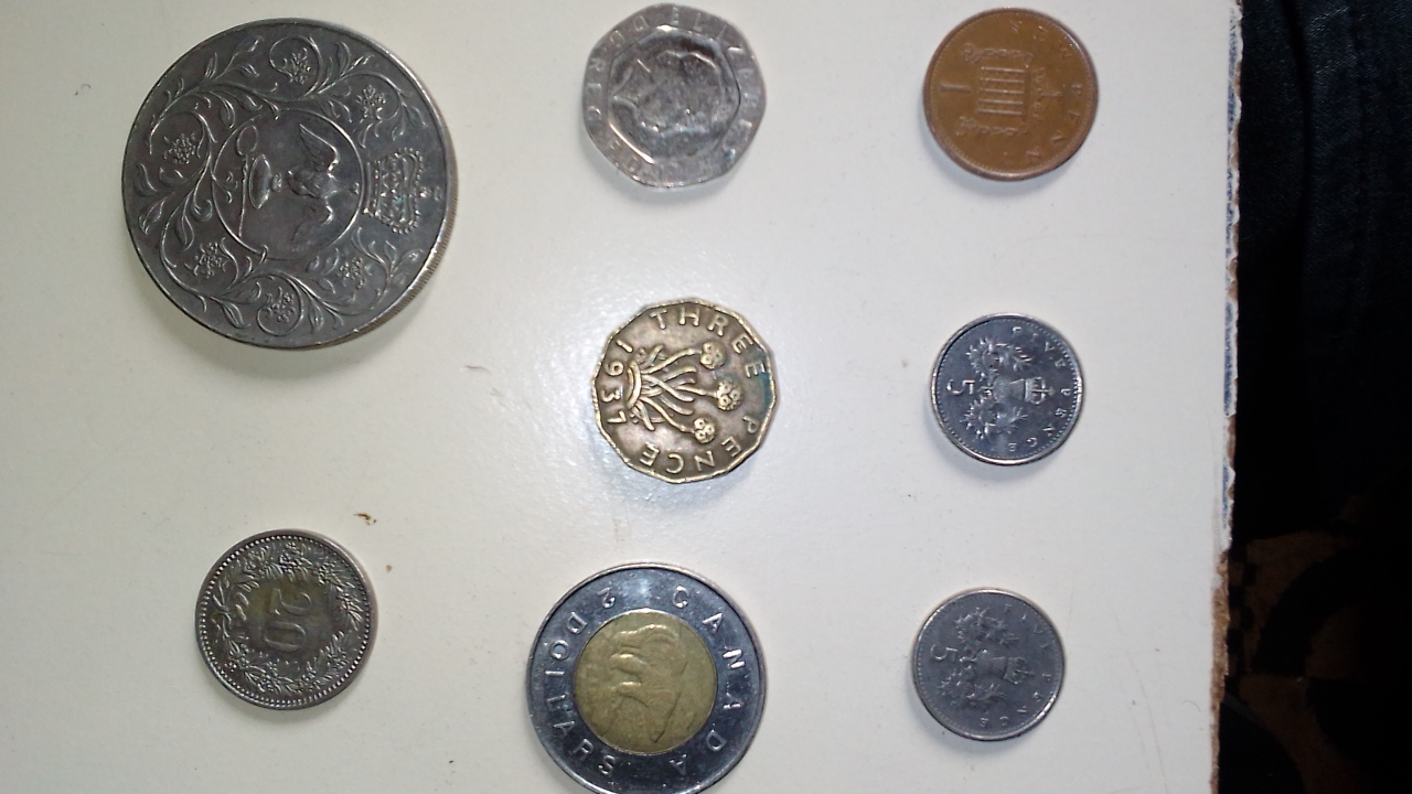 Old coins and coins from different countries.