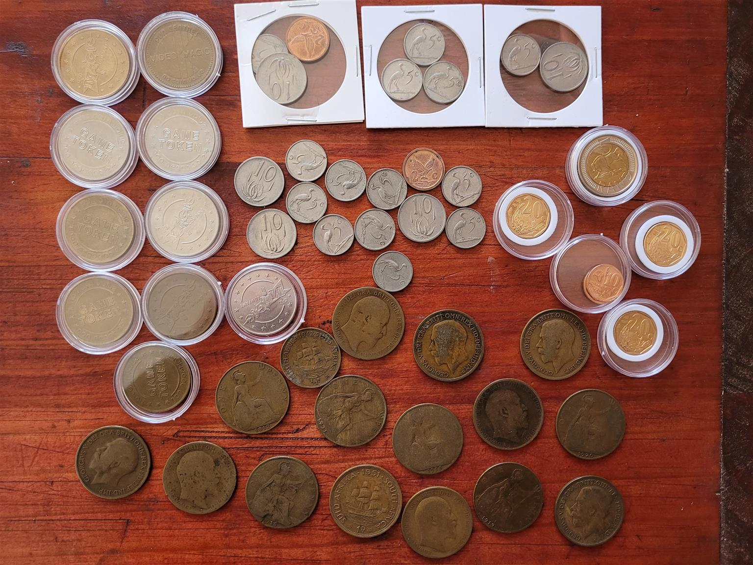 50+ Random Circulated RSA & UK Mixed Coins. Varies from the early 1900 UK Pennies to the new AU Coins, as well as some old Arcade Tokens, a Collection Lot!