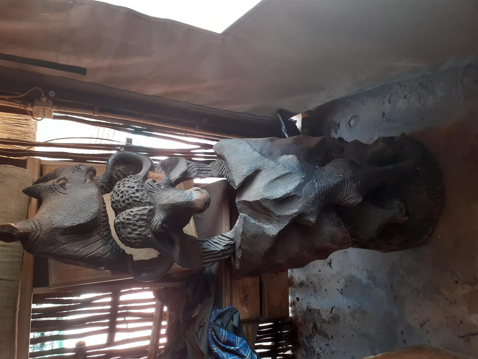 2 x Large Big Five Rhodesian Teak Handcrafted Sculptures
