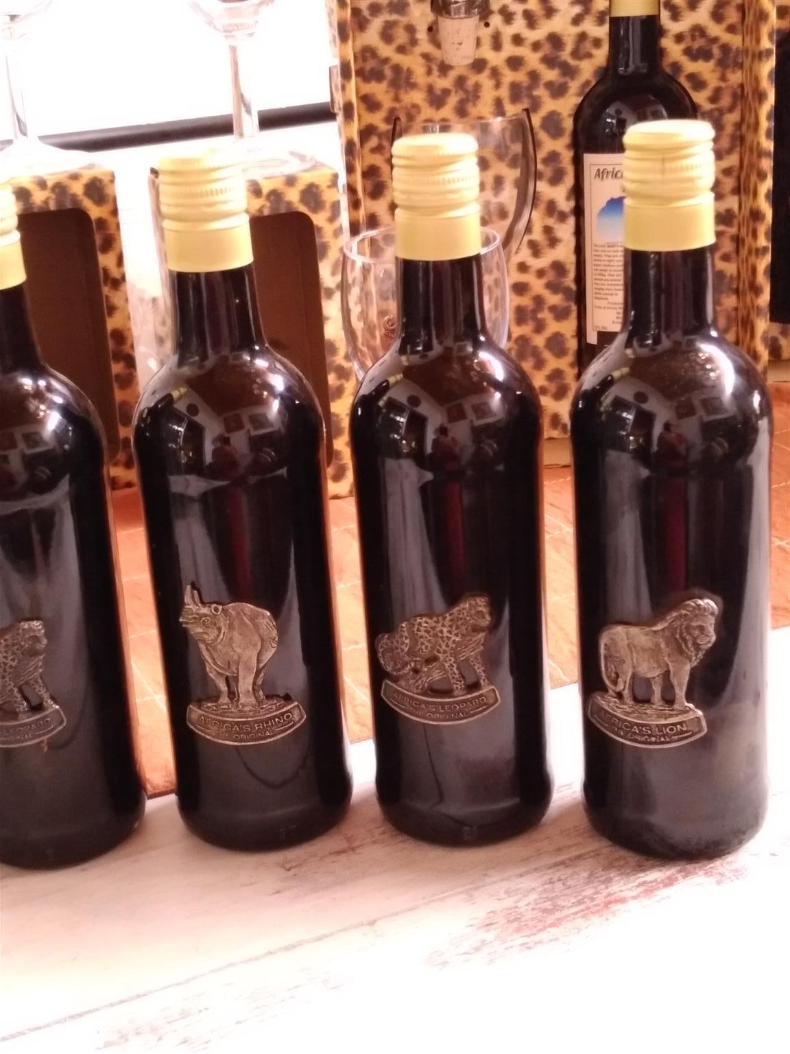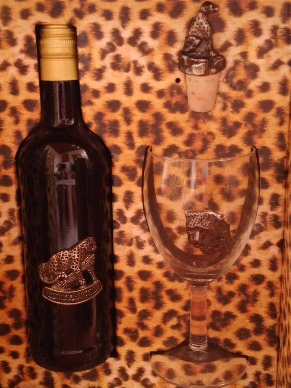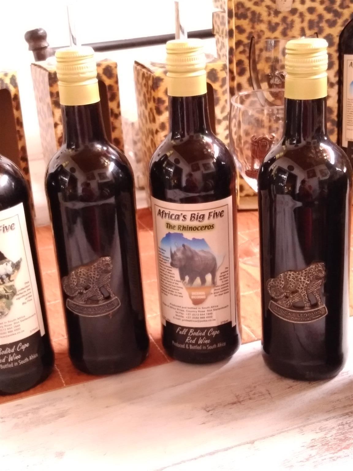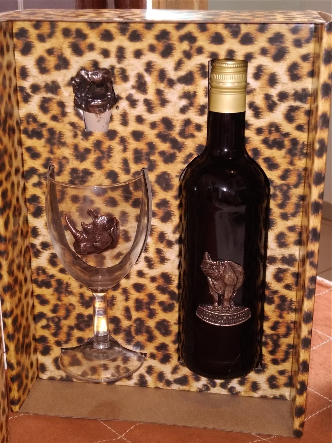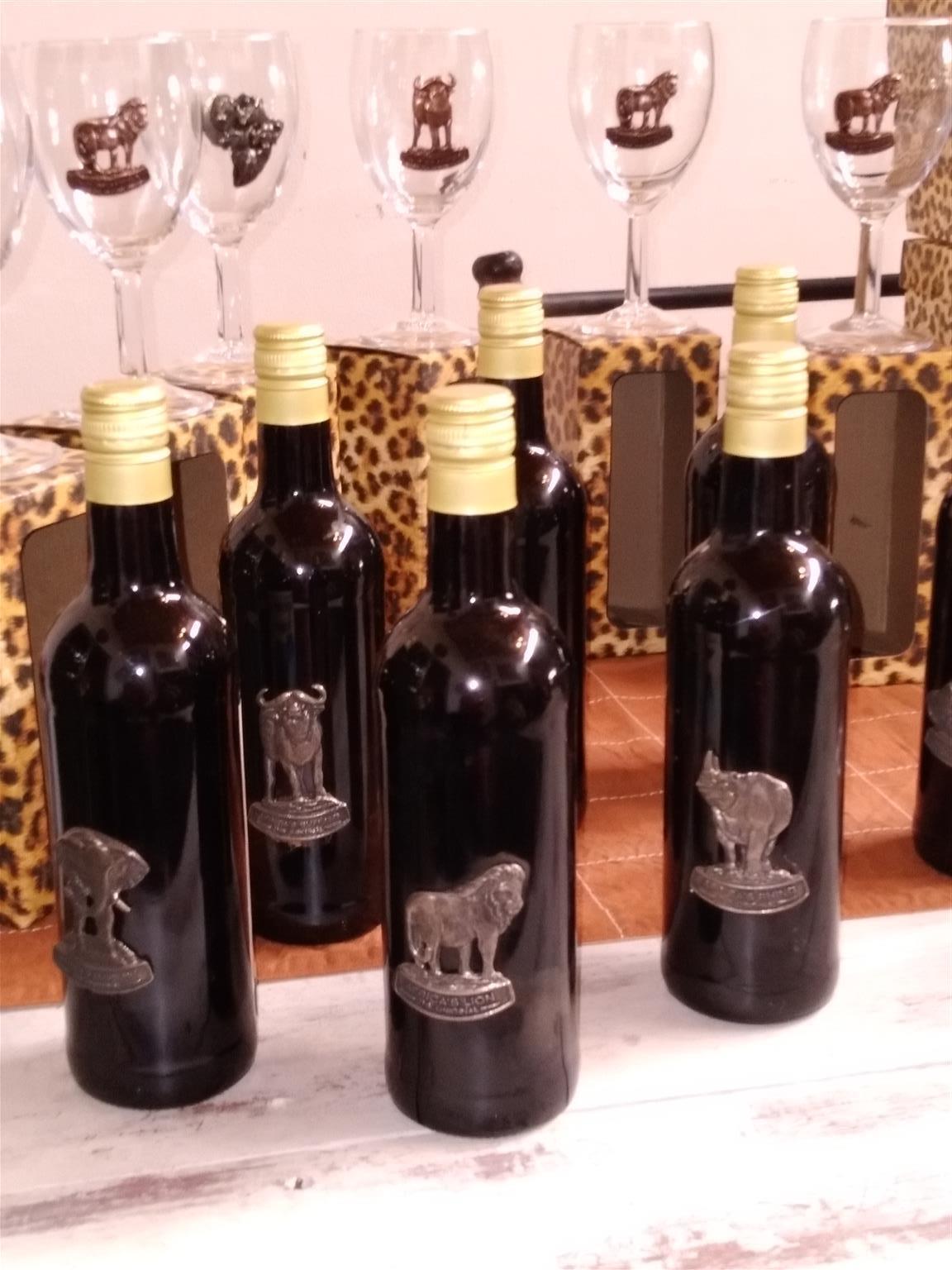 Big 5 Wine Collection with glass and bottle 375 ml Red Wine with cork with matching animal. All animals on glass and bottle are copper. 14 boxes left and not anymore in production.