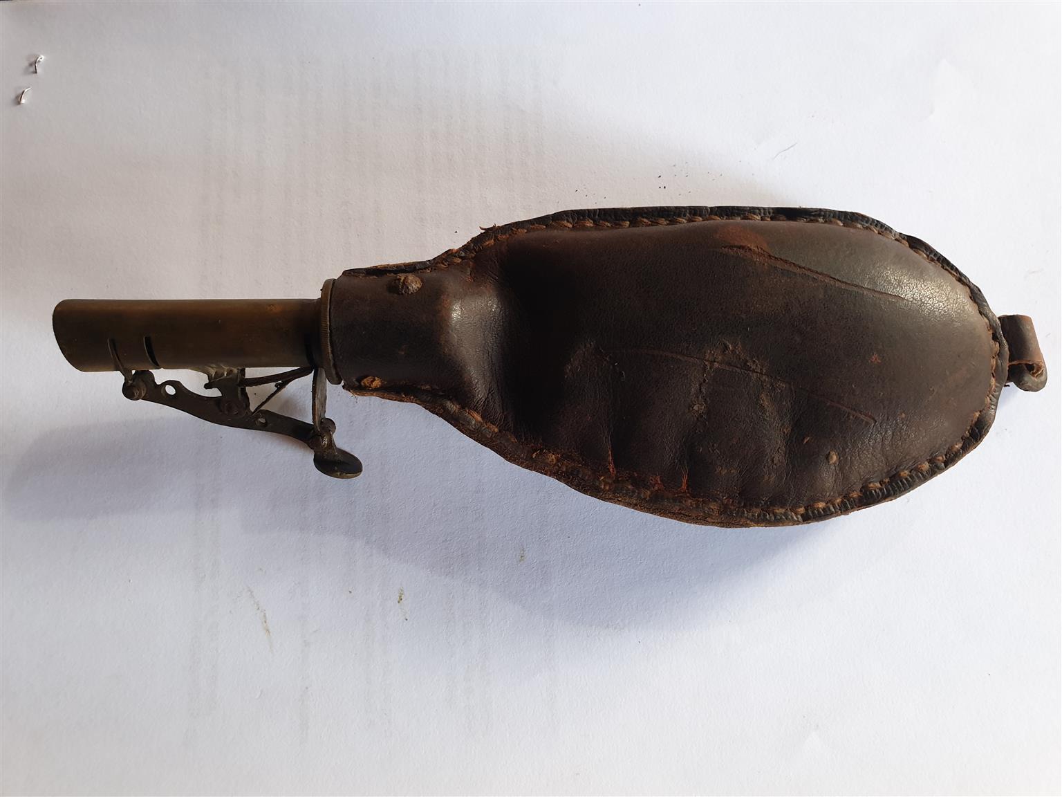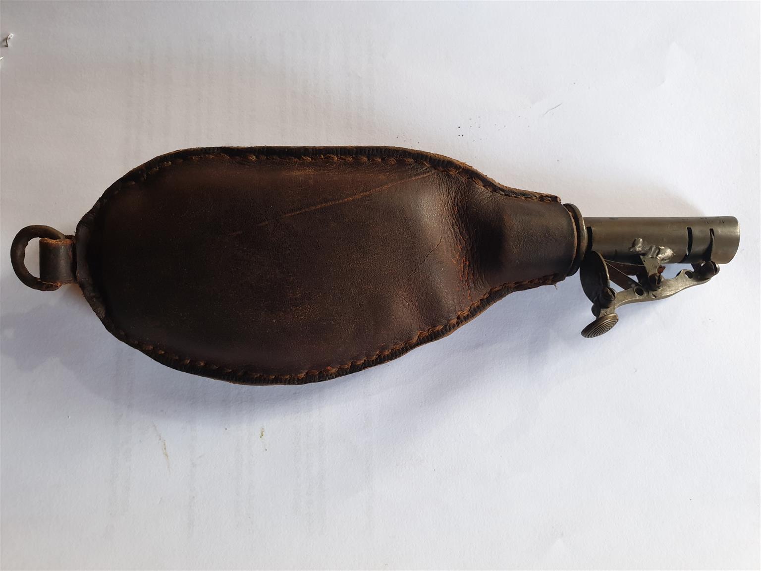 Gun Shot Flask, Antique 3lbs G&JW Hawksley Leather, 2 Step Spout. Late 19th century. Leather in good condition.