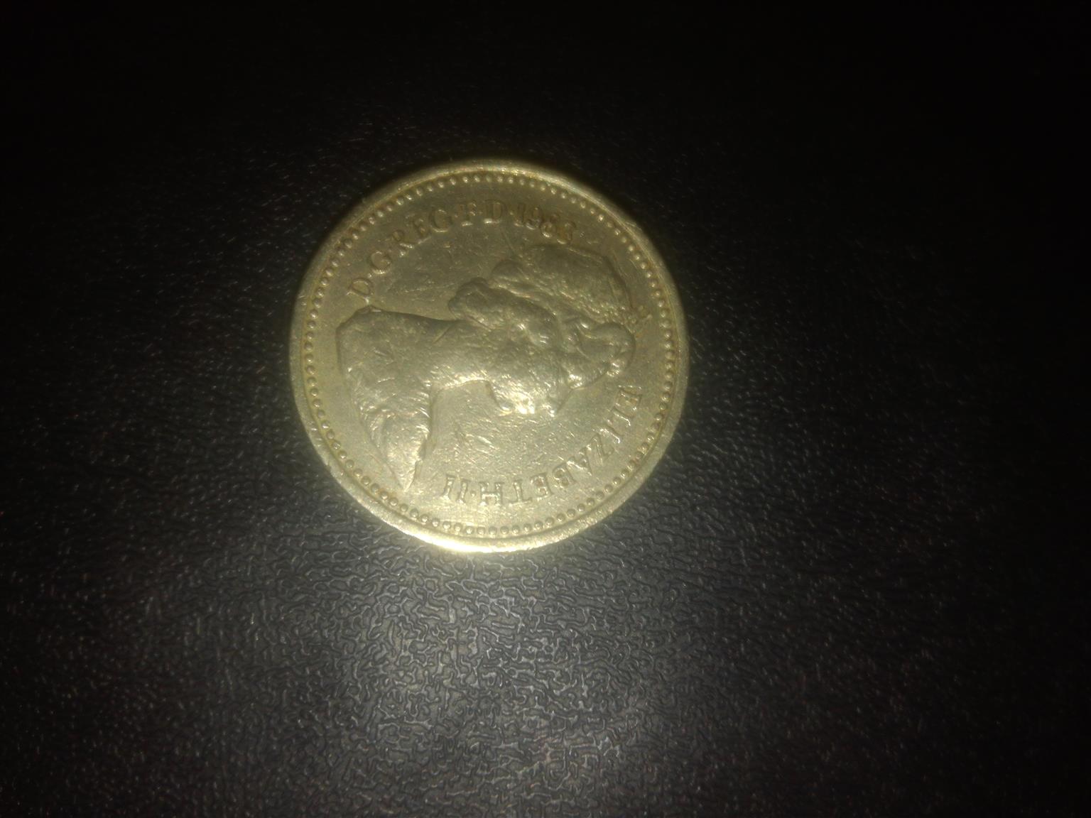 One pound 1983 Elizabeth the second upside-down writing coin very rare