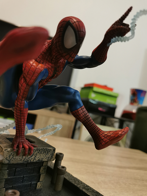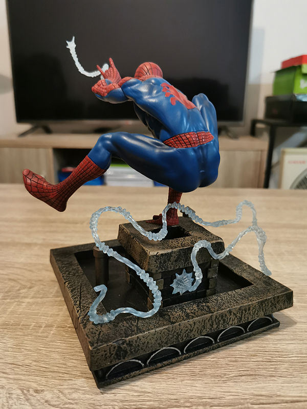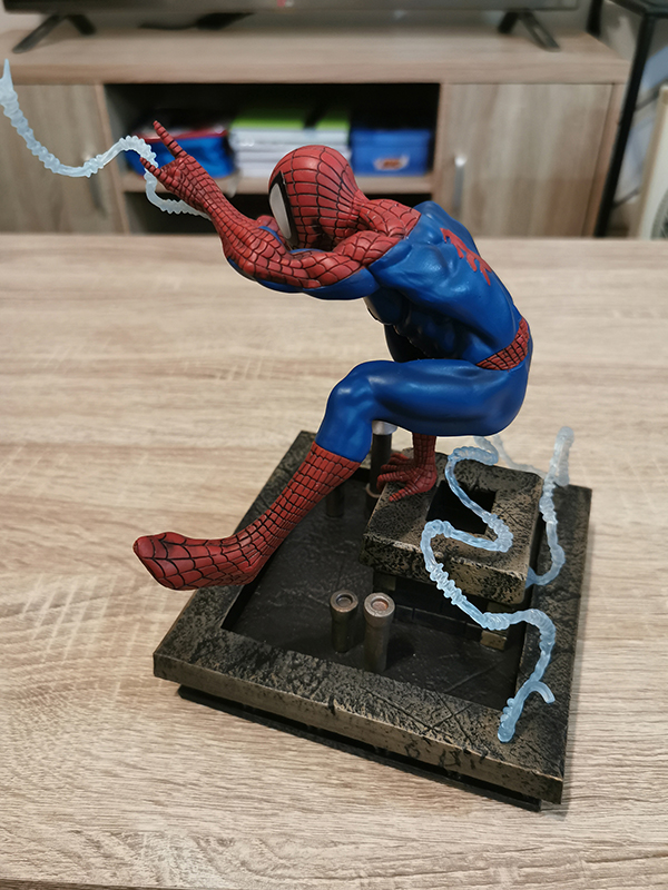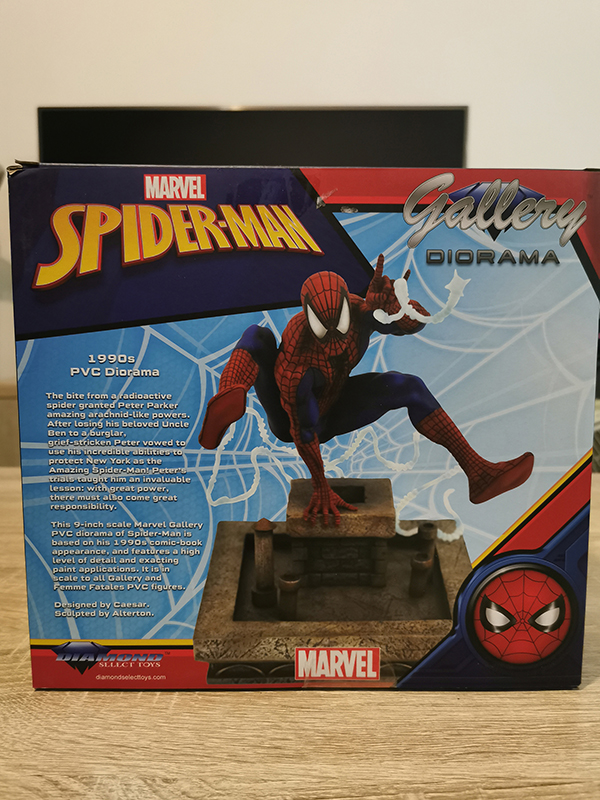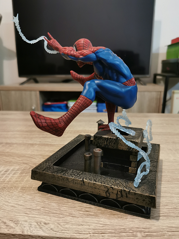 This piece is a fantastic collector’s piece for any Spider-Man fan and is brand new in the box. The diorama depicts a 1990’s Spider-Man Gallery PVC Diorama. Description: A Diamond Select Release. Thwip! The spaghetti webs make a comeback in this new PVC Diorama inspired by classic Spider-Man artwork of the early 90s! Leaping over a rooftop with his webline wrapped around him, this sculpture of Spidey stands approximately 8 inches tall and is case in high grade PVC with highly detailed sculpting and paint applications. Packaged in a full colour window box. Designed by Caesar, sculpted by Alterton. Only opened once to take photographs.