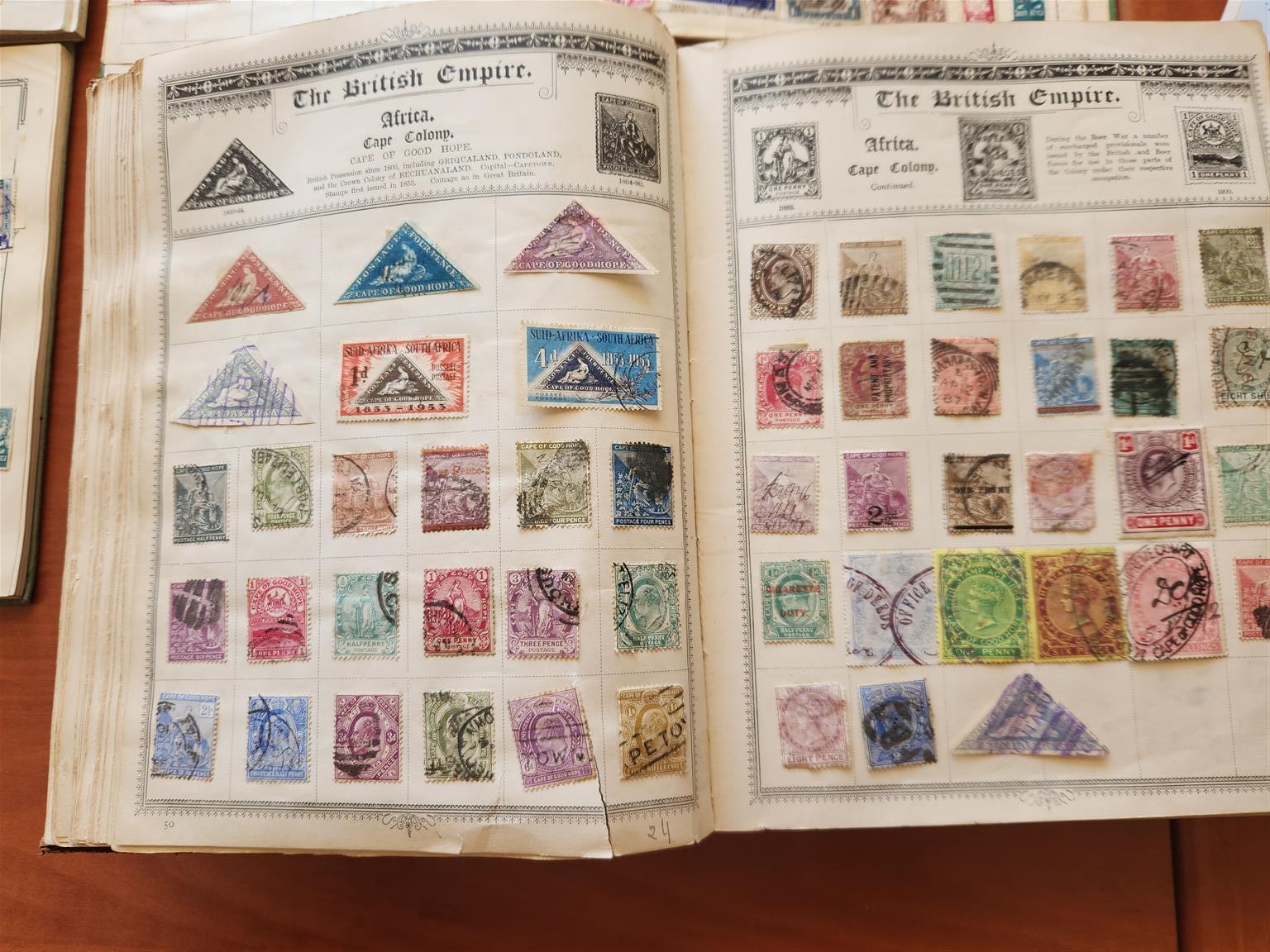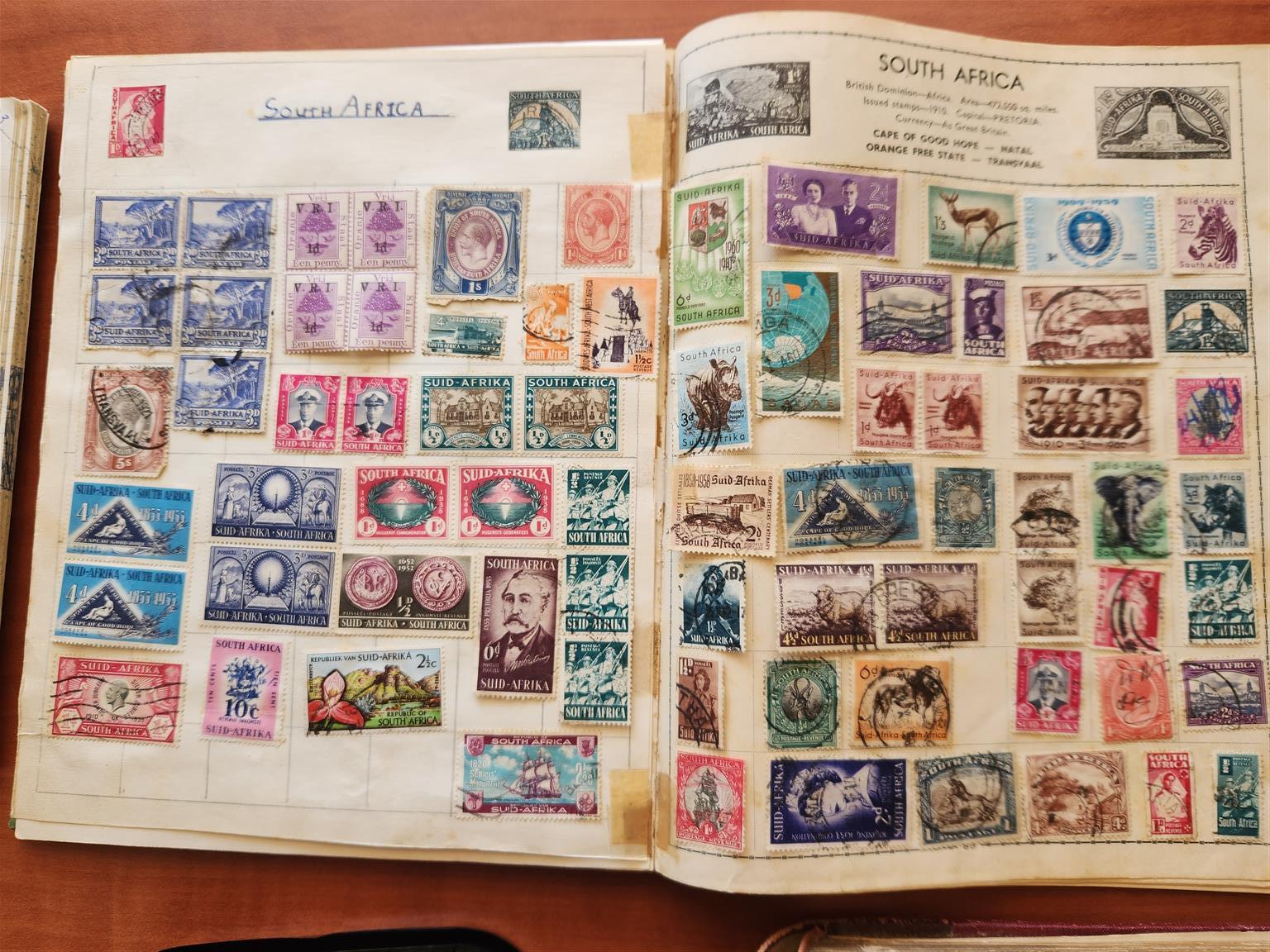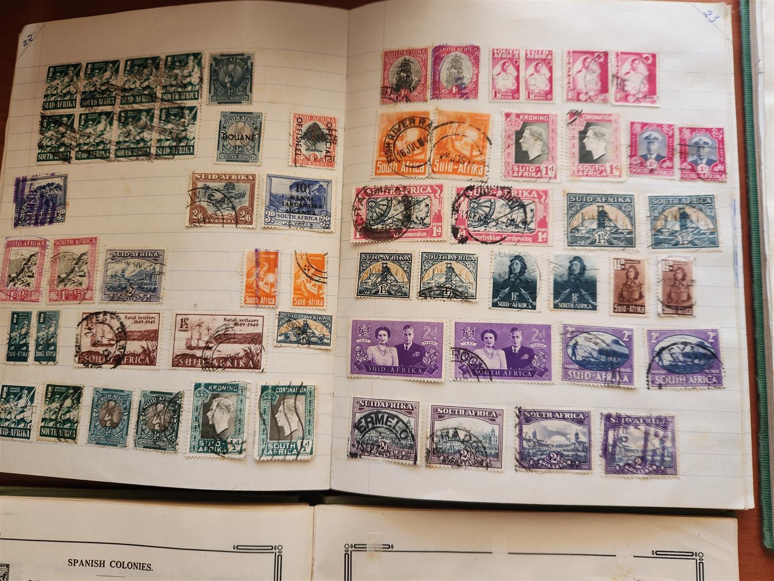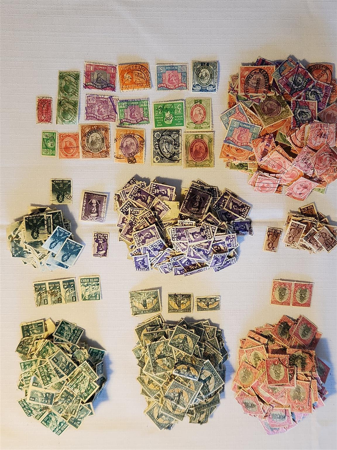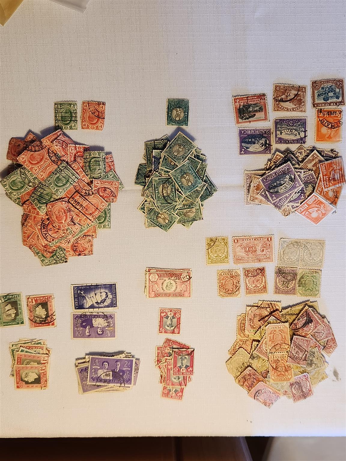 Stamp collections in 3 albums plus many loose stamps. The stamps were collected from around 1935. Photos show a few examples of the stamps.