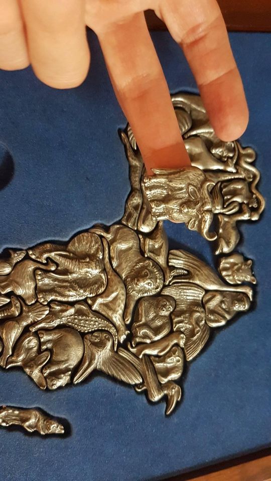 This beautiful and unique puzzle is made entirely of pewter and depicts the animals of Africa in the shape of the continent. Created by jewellers, each puzzle piece can also be worn as a pendant. Its design is both aesthetically pleasing and functional, celebrating Africas greatest resource - its wildlife.