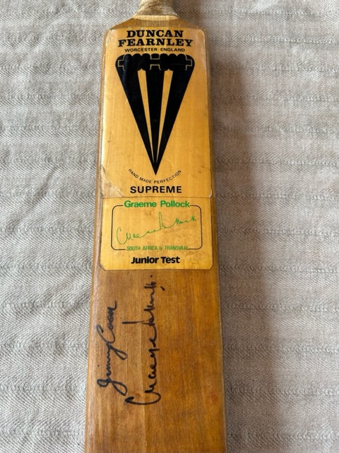 Signed collectable cricket bat. (Duncan Fearnley). Signatures include Graeme Pollock, Clive Rice, Ray Jennings, Alan Kourie, Rupert Hanley amongst others. Owner is downsizing R950 negotiable