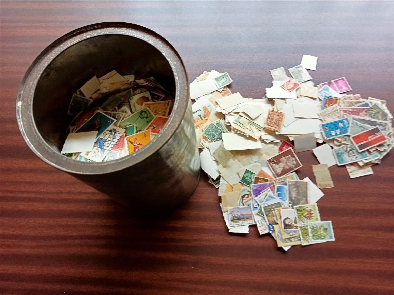 I have 3 coffee tins of stamps available to swap ( see sample photo ).
