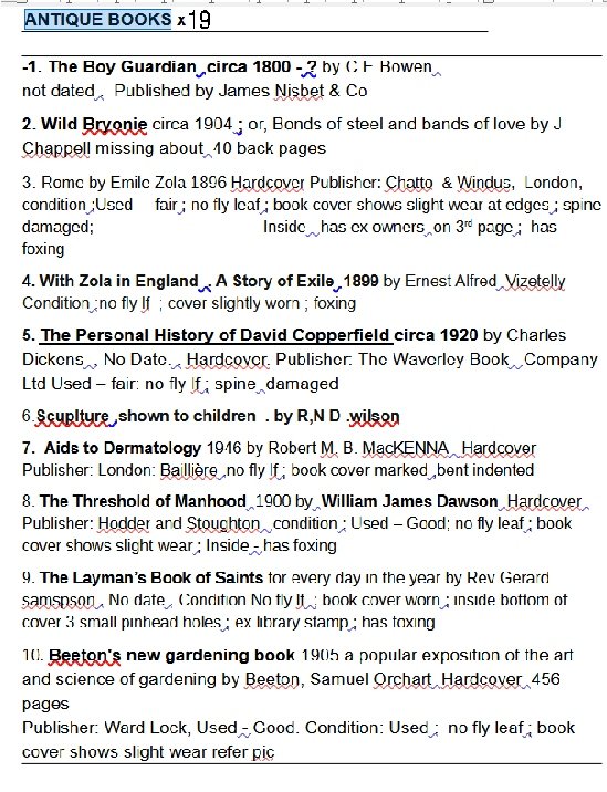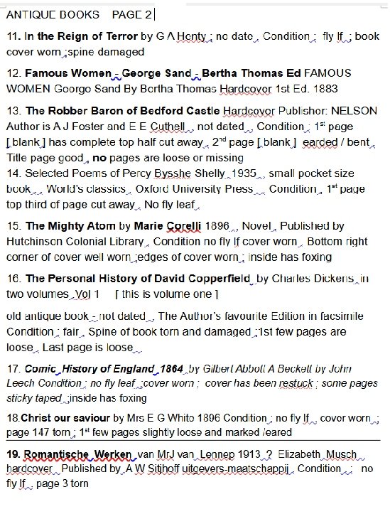 ANTIQUE BOOKS x 18 choose which ones you want to buy at R160 each Postage : by the courier of your choice Postnet /Courier guy/Ram/Express etc...plus R10 for packaging if local = Durban Westville = collect / deliver Contact Toni or steve at Email Cell or