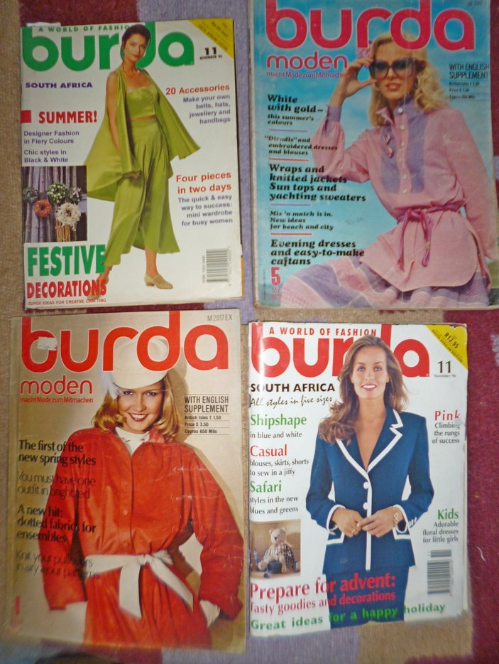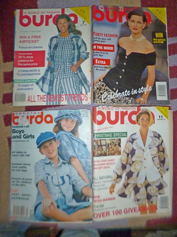 old Burda magazines x 30 with inserts from 1978 to 1995 Postage : by the courier of your choice Postnet /Courier guy/Express etc...plus R10 for packaging if local = Durban Westville = collect / deliver Contact Toni or steve at Email Cell or or