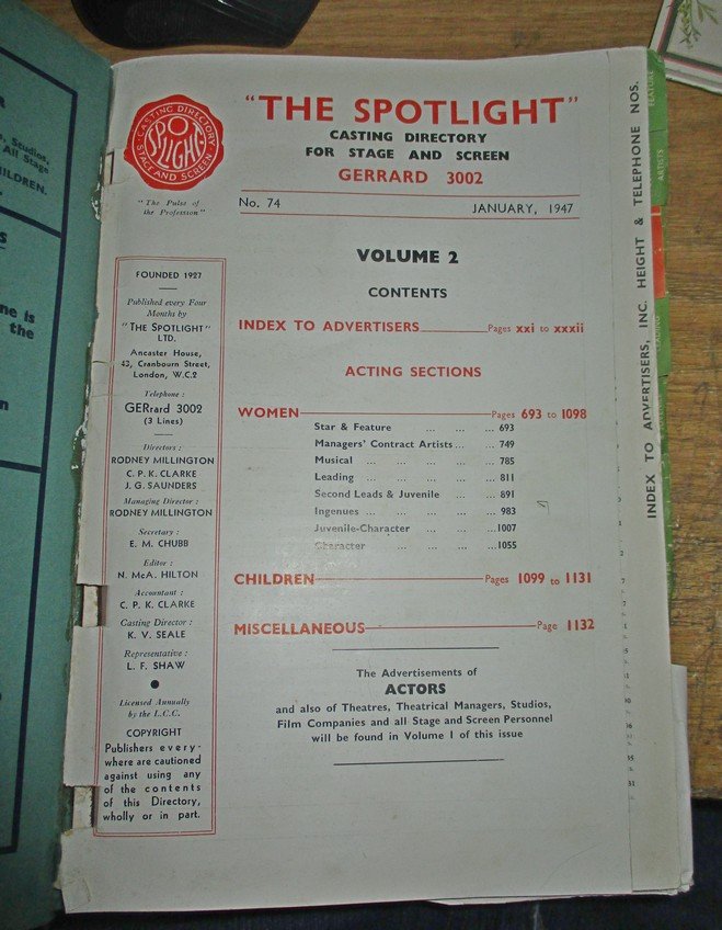 Spotlight Casting Directory Jan 1947 Vol 2 R450 condition : spine torn ; inside refer pics Postage : by your courier or Postnet to a Postnet near u R109 or Pep store to a Pep store near u R59 plus R15 for packaging packaging if local = Durban =collect / deliver Contact Toni or steve at Email Cell or