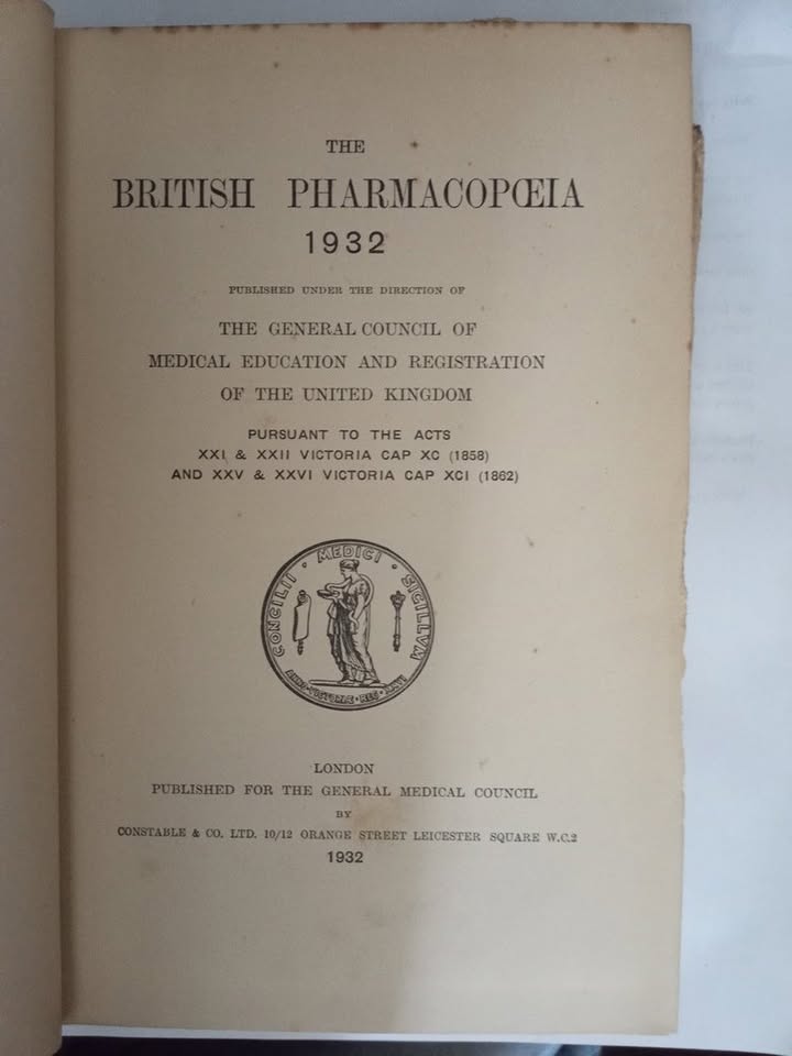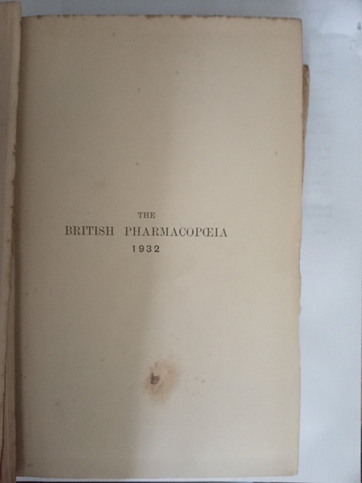 The British Pharmacopoeia 1932 Published under the Direction of The General Council of Medical Education and Registration of the United Kingdom 713 pages condition : cover is marked & worn ; side of book is marked 1st page is marked refer pic R150 Postage : by the courier of your choice Postnet /Courier guy/Express etc...plus R10 for packaging if local = Durban Westville = collect / deliver Contact Toni or steve at Email Cell or or