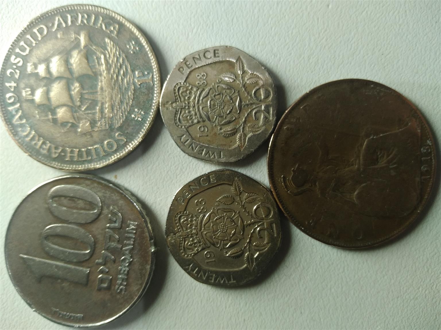 Hi I'm selling old coins 1 cent for South Africa 1966, United States of America 1 cent 1983 and Elizabeth 2 20 pence 1988 and 1983