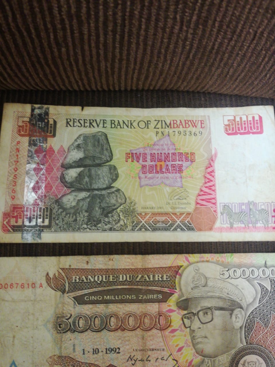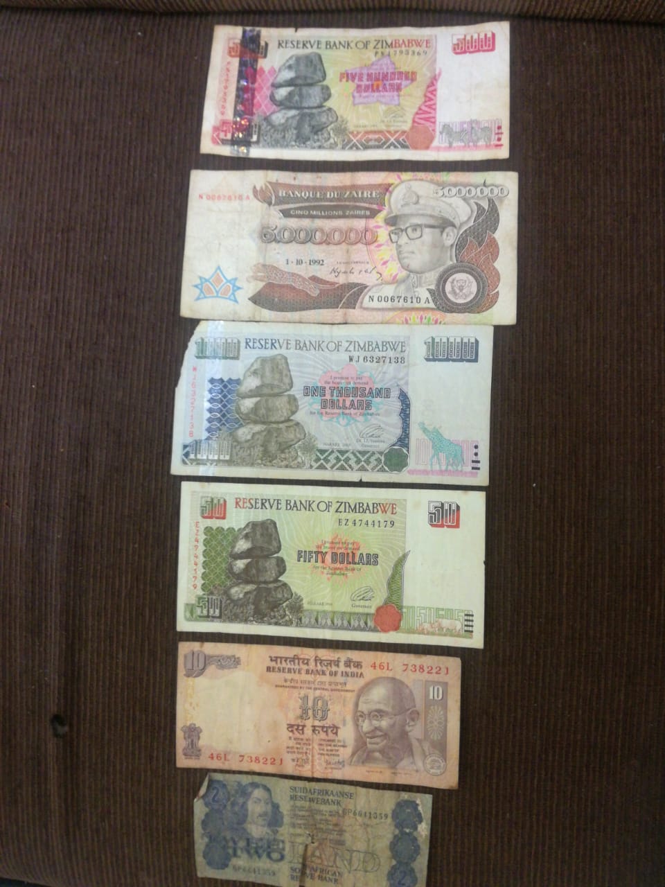Zimbabwe money notes in fair condition. Make an offer.
