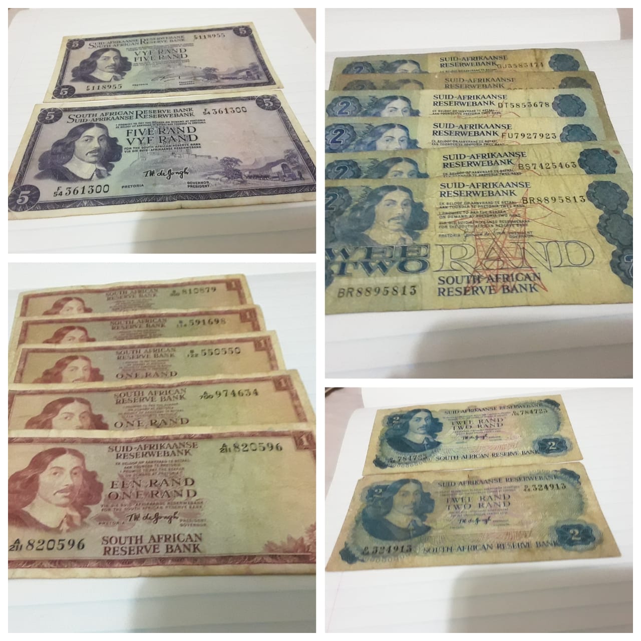 I have for sale old SA banknotes ..15 notes in all dated from 1964 to 1978 ..R500 the lot