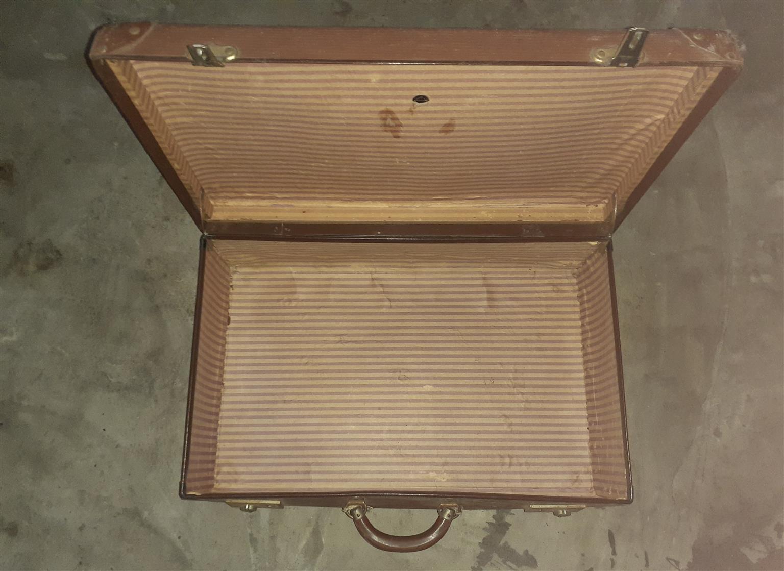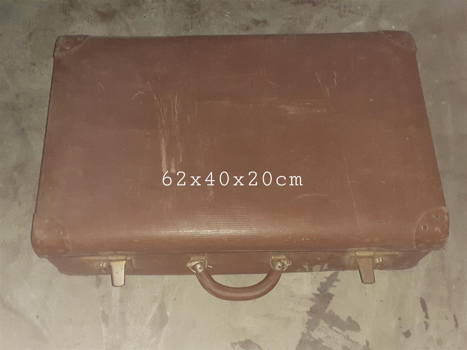 An Old Vintage Suitcase brown cardboard type – size 62 x 40 x 20cm – about 38 years old – fair condition