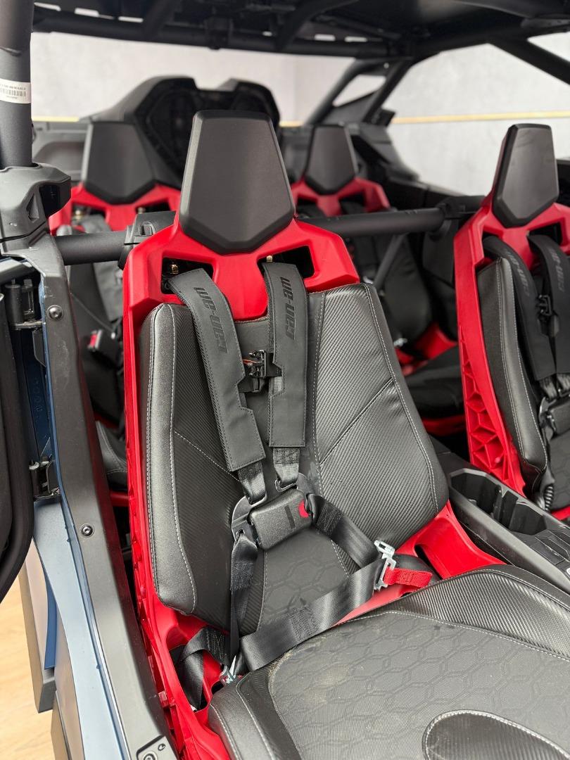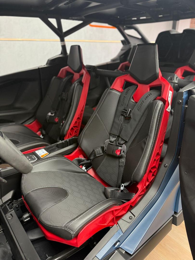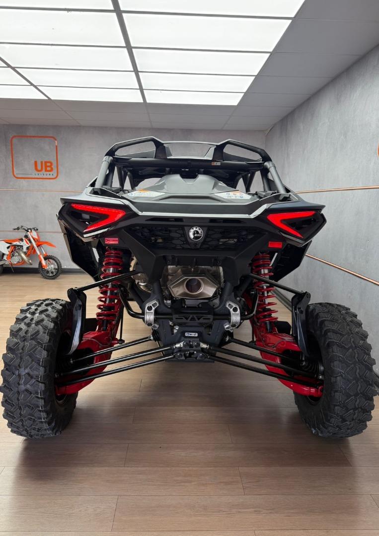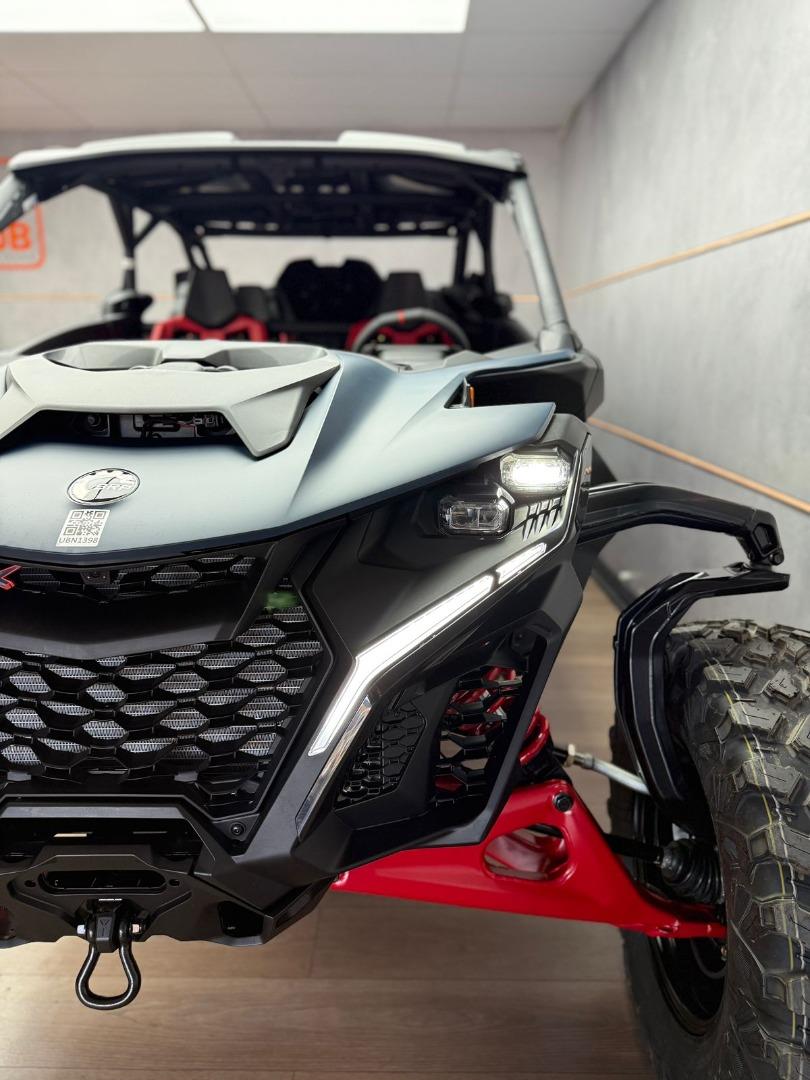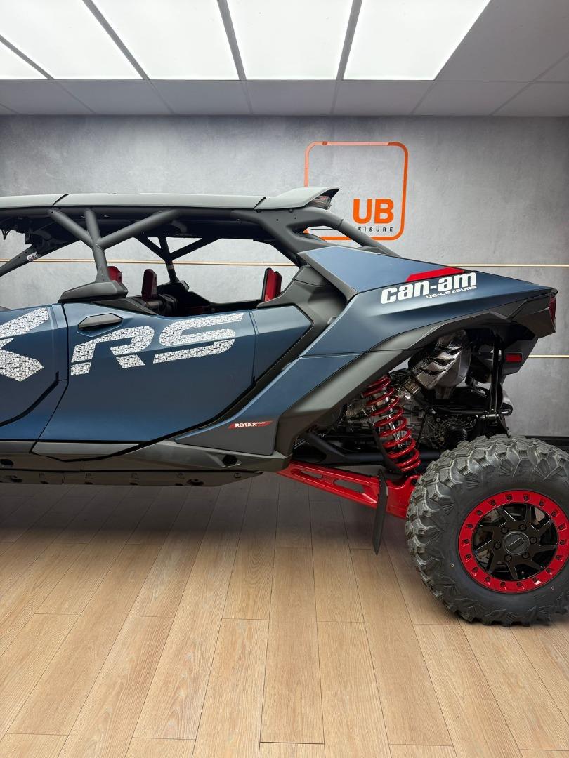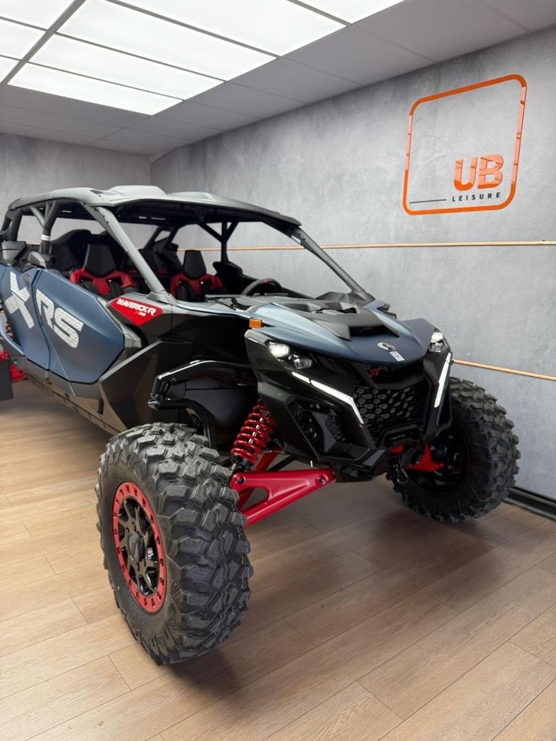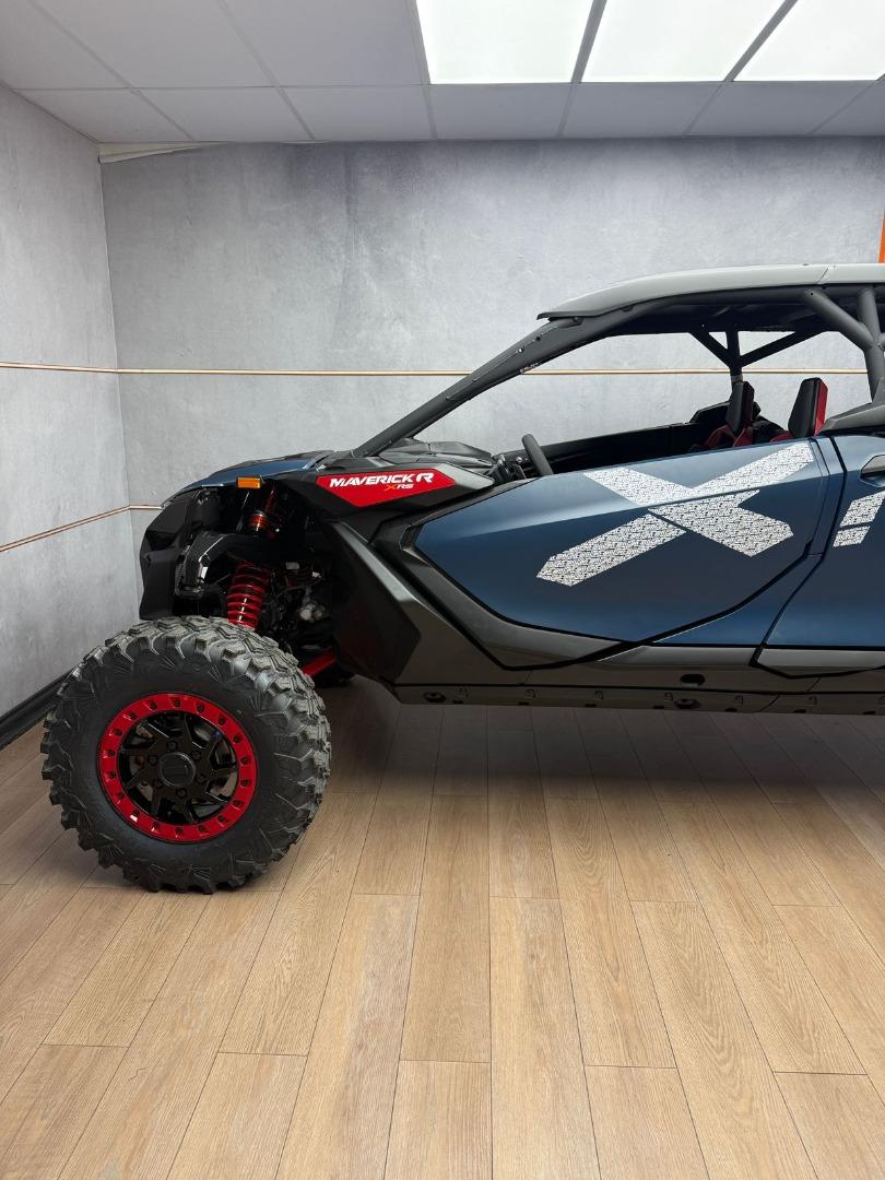 Discover the BRAND NEW 2025 Canam Maverick R MAX X RS DCT with Smart Shox- Dusty Blue / Legion Red, now available in store, for just R 1 899 900 . This side by side have a 240 hp, Rotax 999T engine, 999 cc turbocharged triple‑cylinder engine, liquid cooled with integrated intercooler and high‑performance air filter, Intelligent Throttle Control with Electronic Fuel Injection, Gen 2 Tri‑mode DPS high torque Power Steering, 50 Litre Fuel Tank, Front and rear disc brakes.