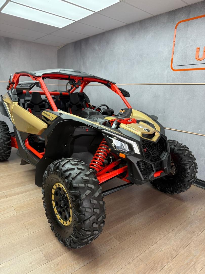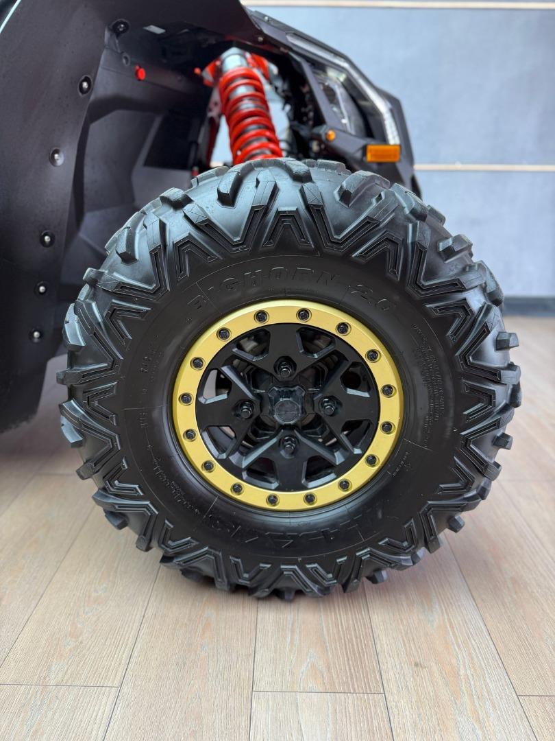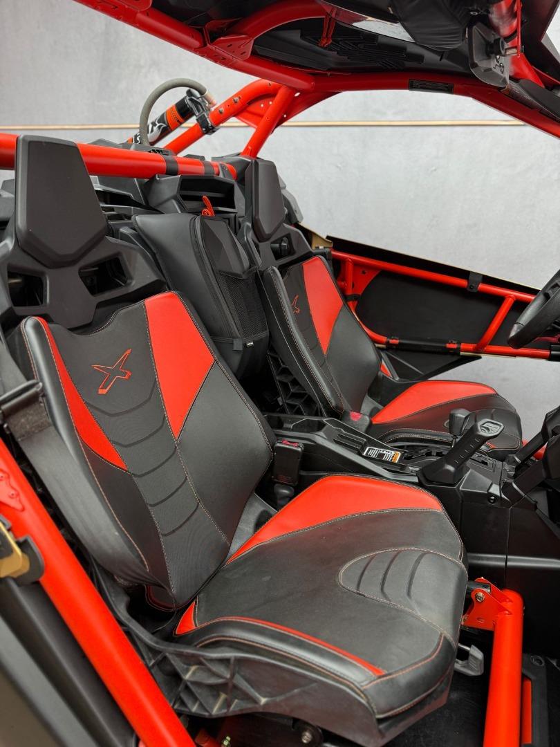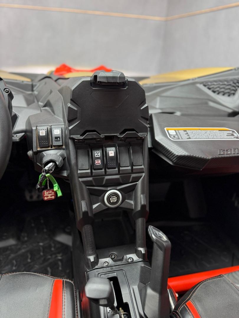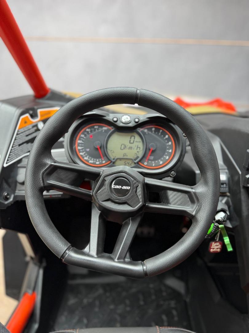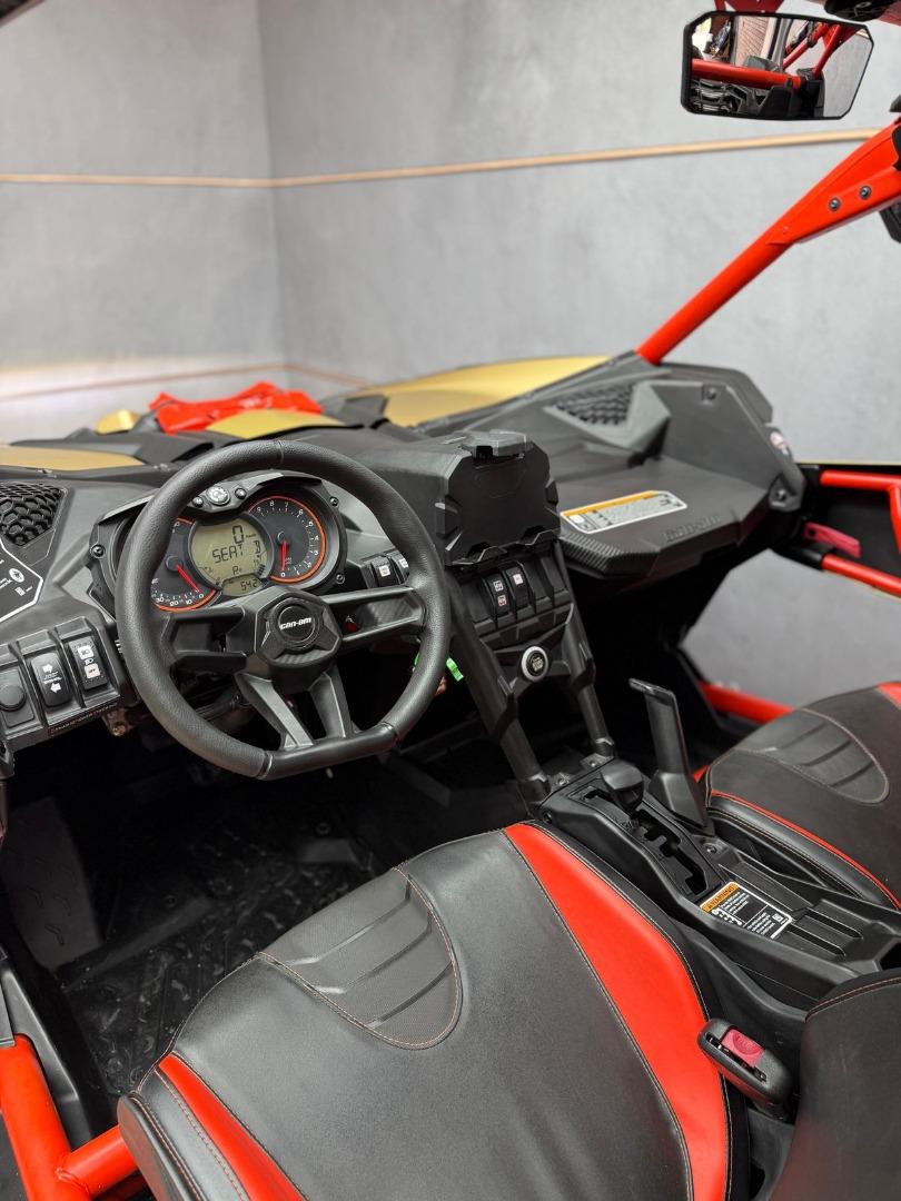 Discover the 2017 Canam Maverick X3 XRS 4x4 with Smart Shox, now available in store, for just R679 999. This side by side have a 200 hp, Rotax® ACE (Advanced Combustion Efficiency) 900 cc turbocharged triple-cylinder engine, liquid-cooled with integrated intercooler and high-perfomance air filter, Intelligent Throttle Control with Electronic Fuel Injection (EFI), High torque Tri-Mode Dynamic Power Steering, 40 litre fuel tank, Front and rear disc brakes.
