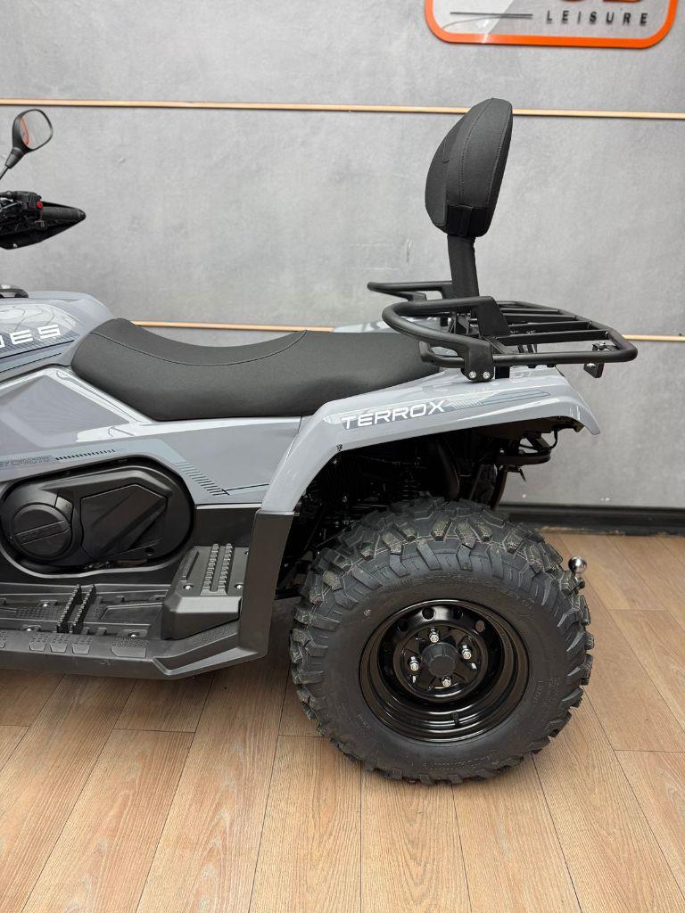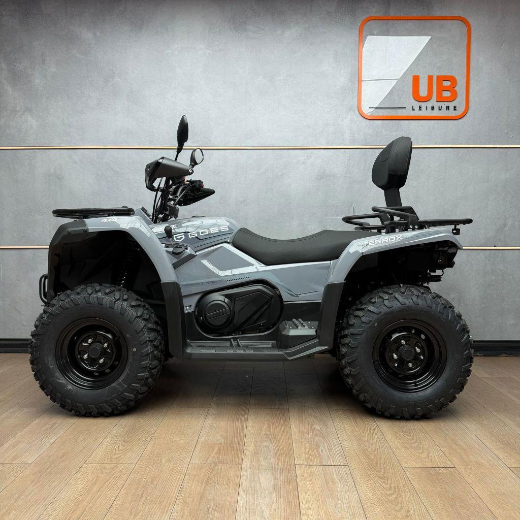 Discover the BRAND NEW 2026 Goes Terrox 400L 4x4 - Ghost Grey, for just R99 900. This quad has a 1 cylinders, 4 valve ,4 strokes,SOHC Engine, CVT Gearbox, 14 Litre Fuel Tank, Liquid Cooled, Electric Starter, 300kg Towing capacity hitch, Front wheel side brake + rear wheel central axle brake + central axle parking brake.