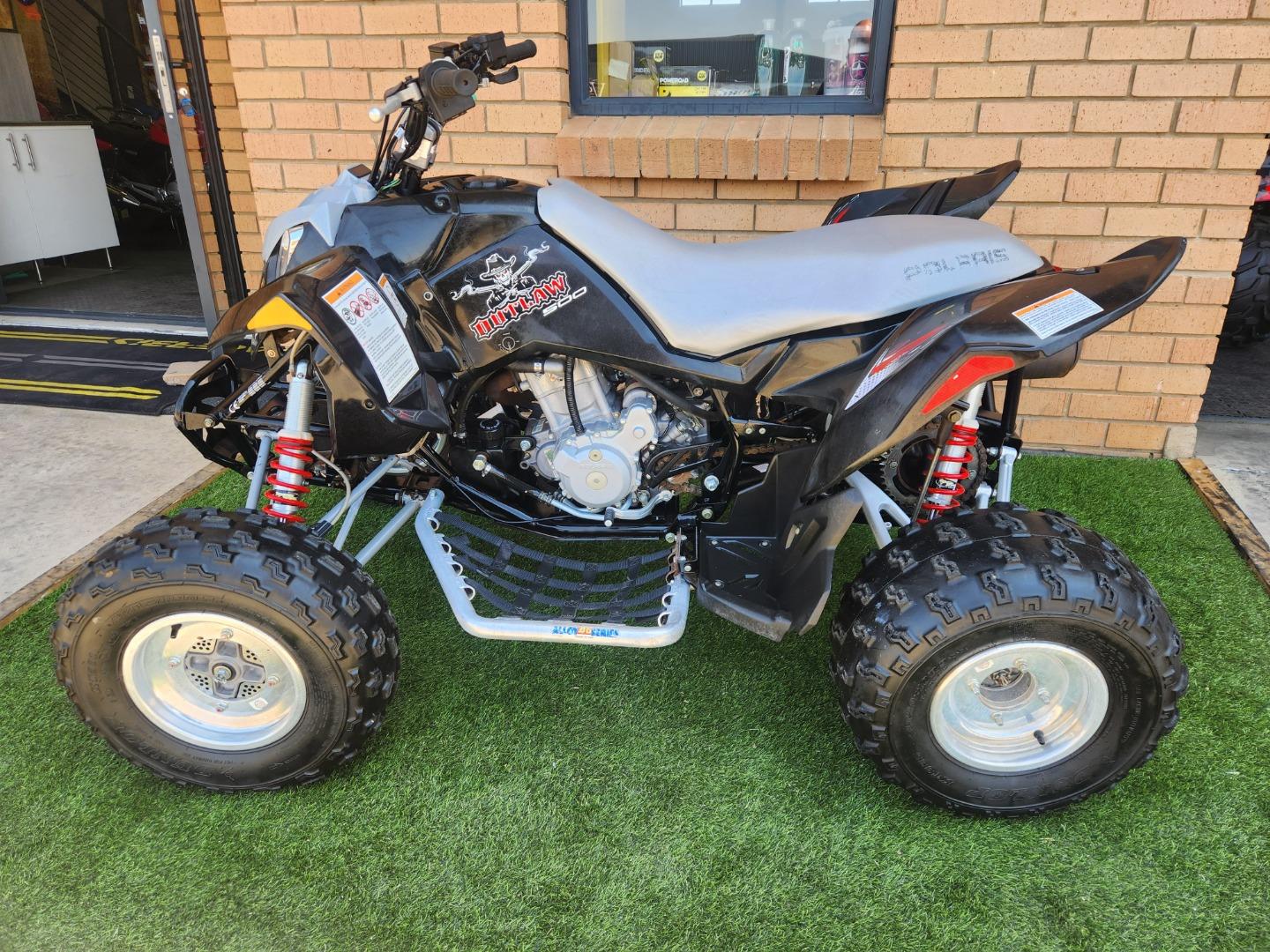 In mint condition, 1 owner since new. Spotless, electric start with reverse and independent rear suspension, fox shocks. This is the cleanest polaris outlaw we have ever laid eyes on. A fantastic outride quad for any event. Fast , powerfull and rides soft. Be the outlaw. Trade ins welcome, nation wide delivery avalible.