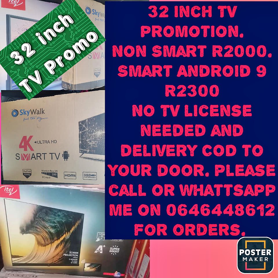 We have received a batch of new 32 inch tvs at wholesale prices to the public. Cash on delivery and no tv license needed.Please call or wattsapp us on [hidden information] for orders and queries.