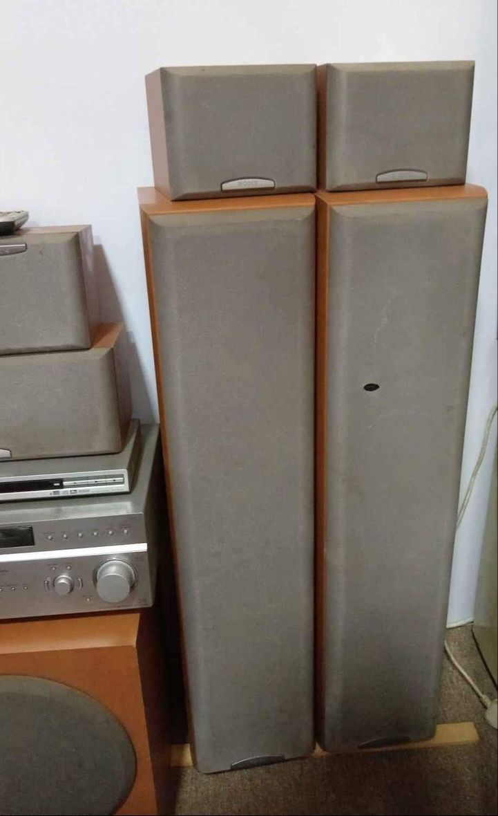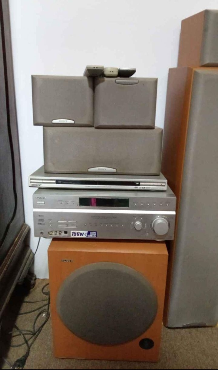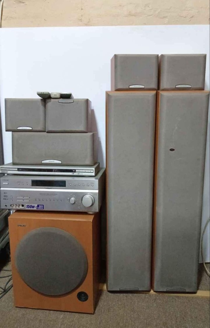 Sony home theater system. Slight tear in one speaker cover. Working condition.