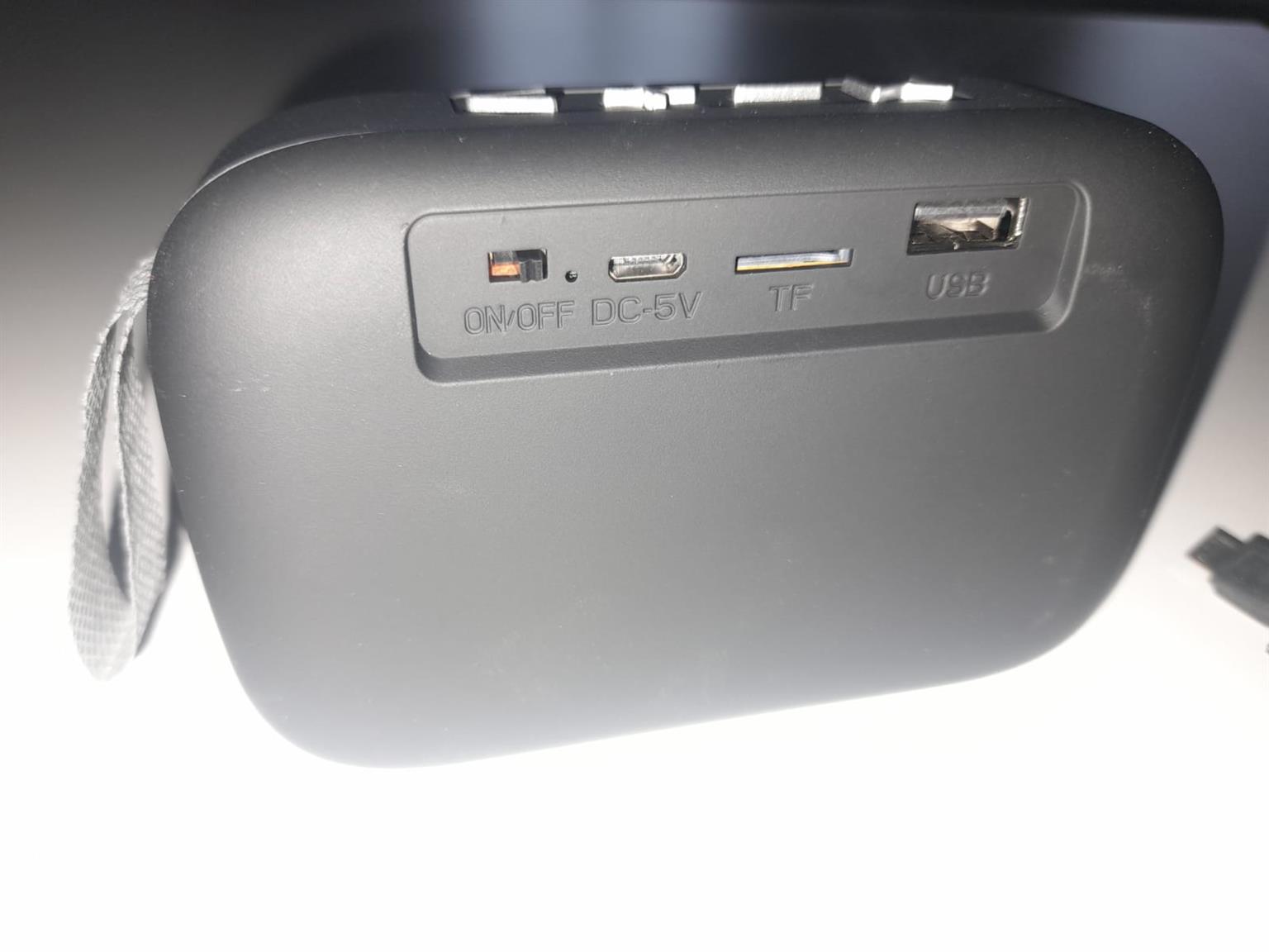 A lightweight, compact design that packs a punch and supports 4 play modes (USB, SD Card, Bluetooth & FM Radio) colors: black and grey. Dimensions: 120 x 80 x 40mm