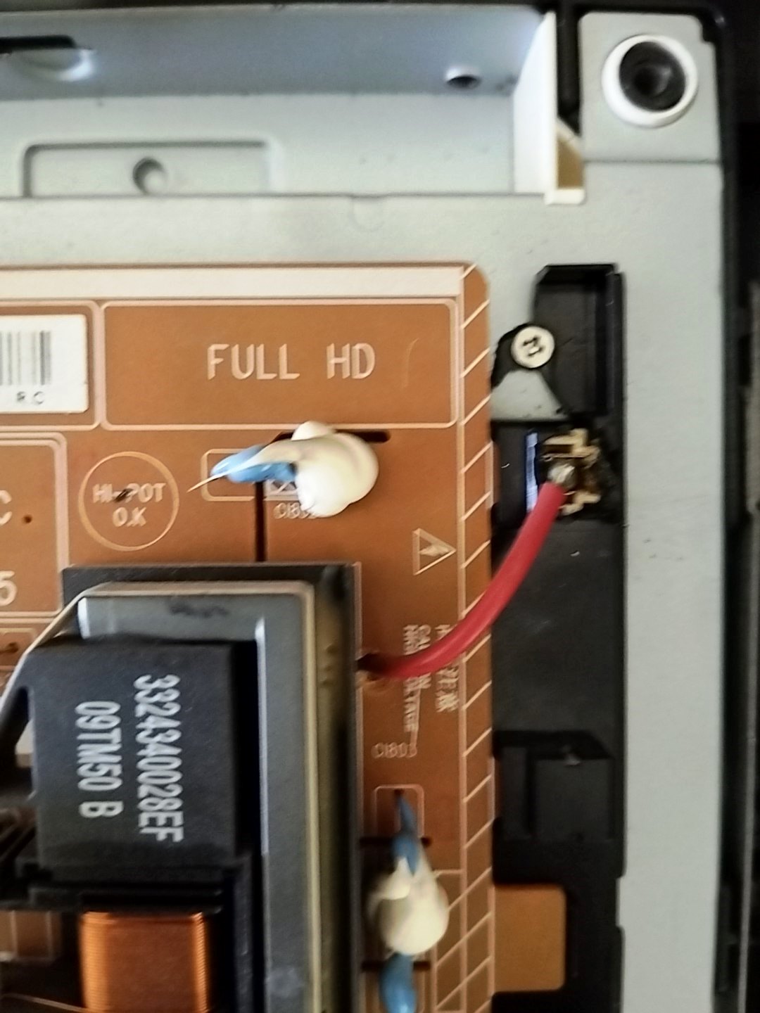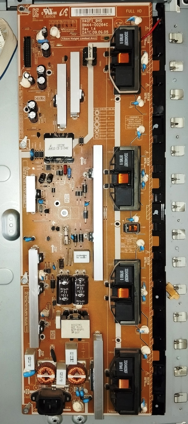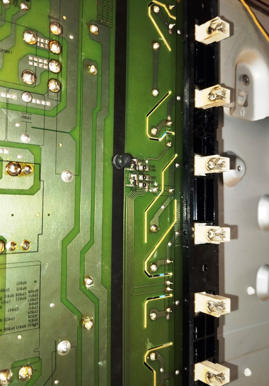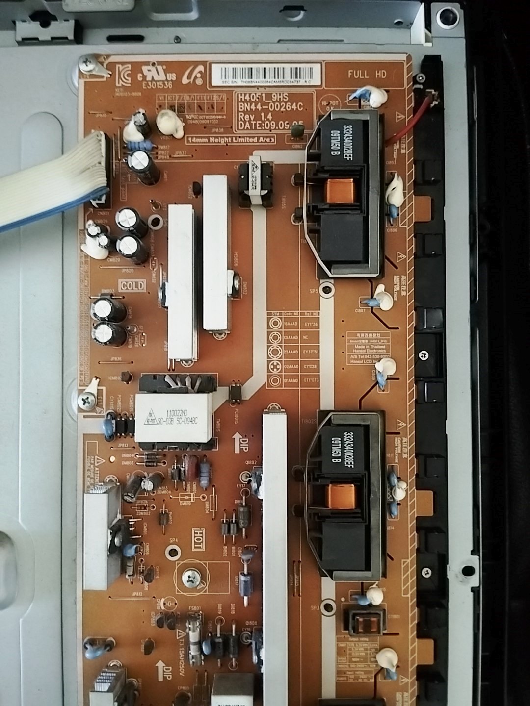 Power PCB seems to be faulty. Backlighting faulty with a broken post or two.