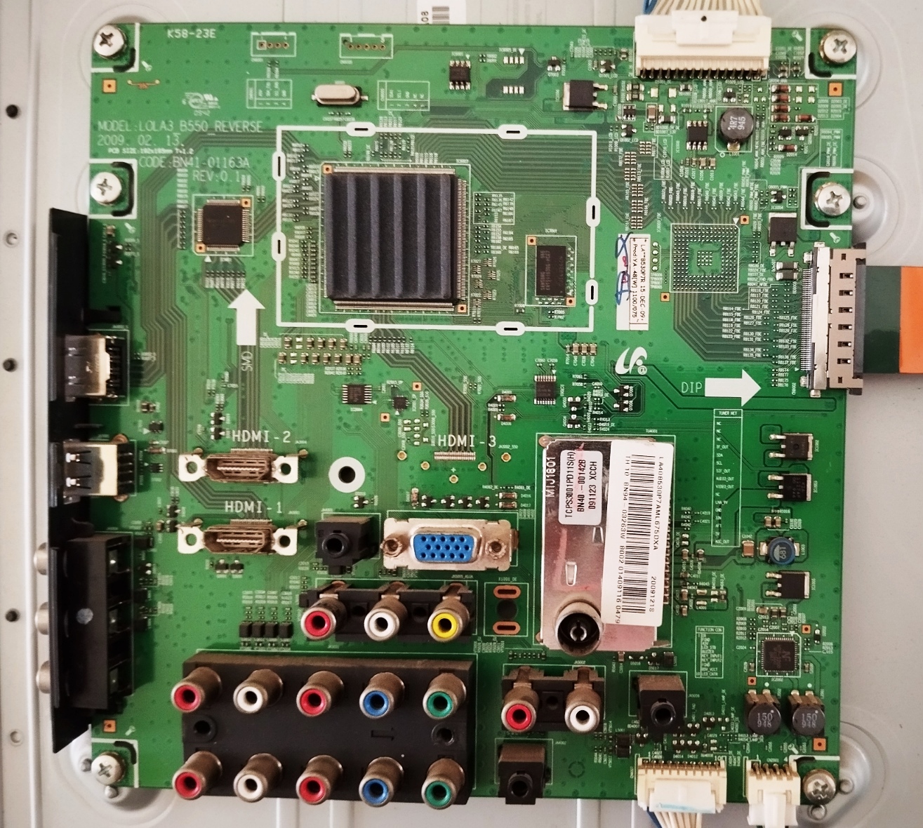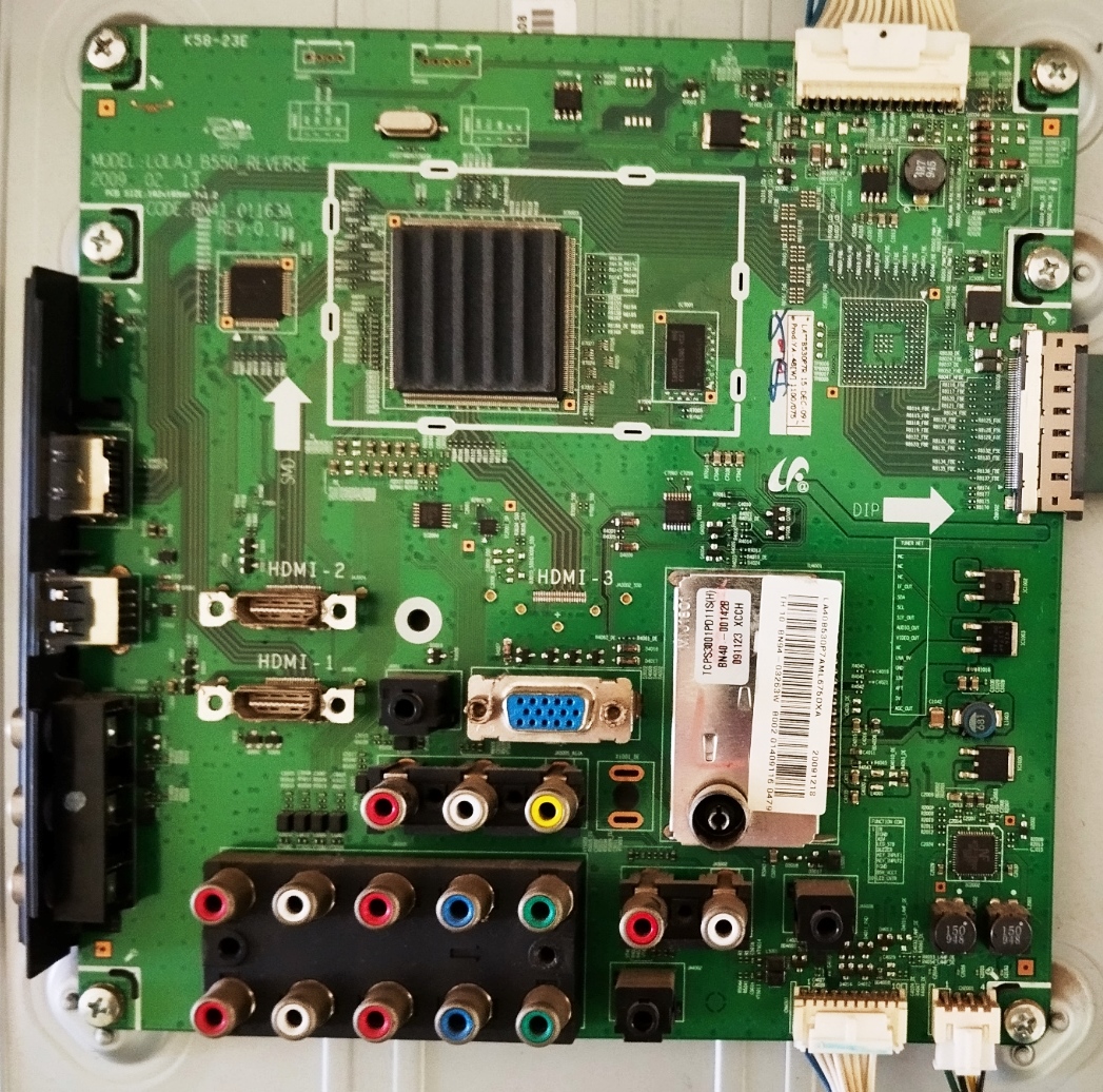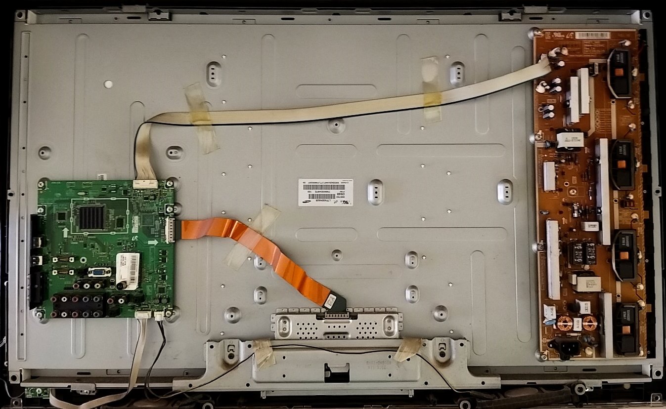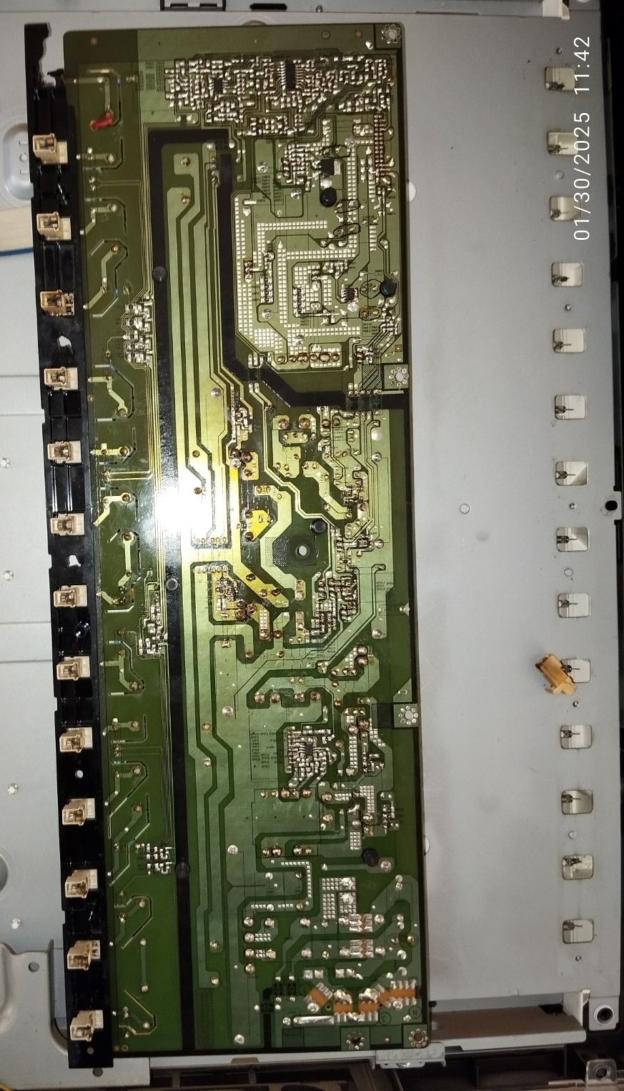 Power PCB seems to be faulty. Backlighting faulty with a broken post or two.
