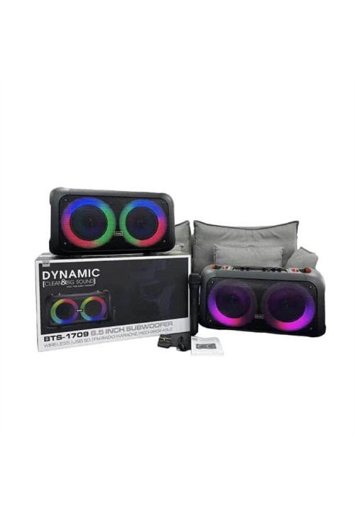 Experience powerful sound and versatile functionality with our Portable Subwoofer Bluetooth Speaker with Wireless MIC – Model BTS-1709. Addition