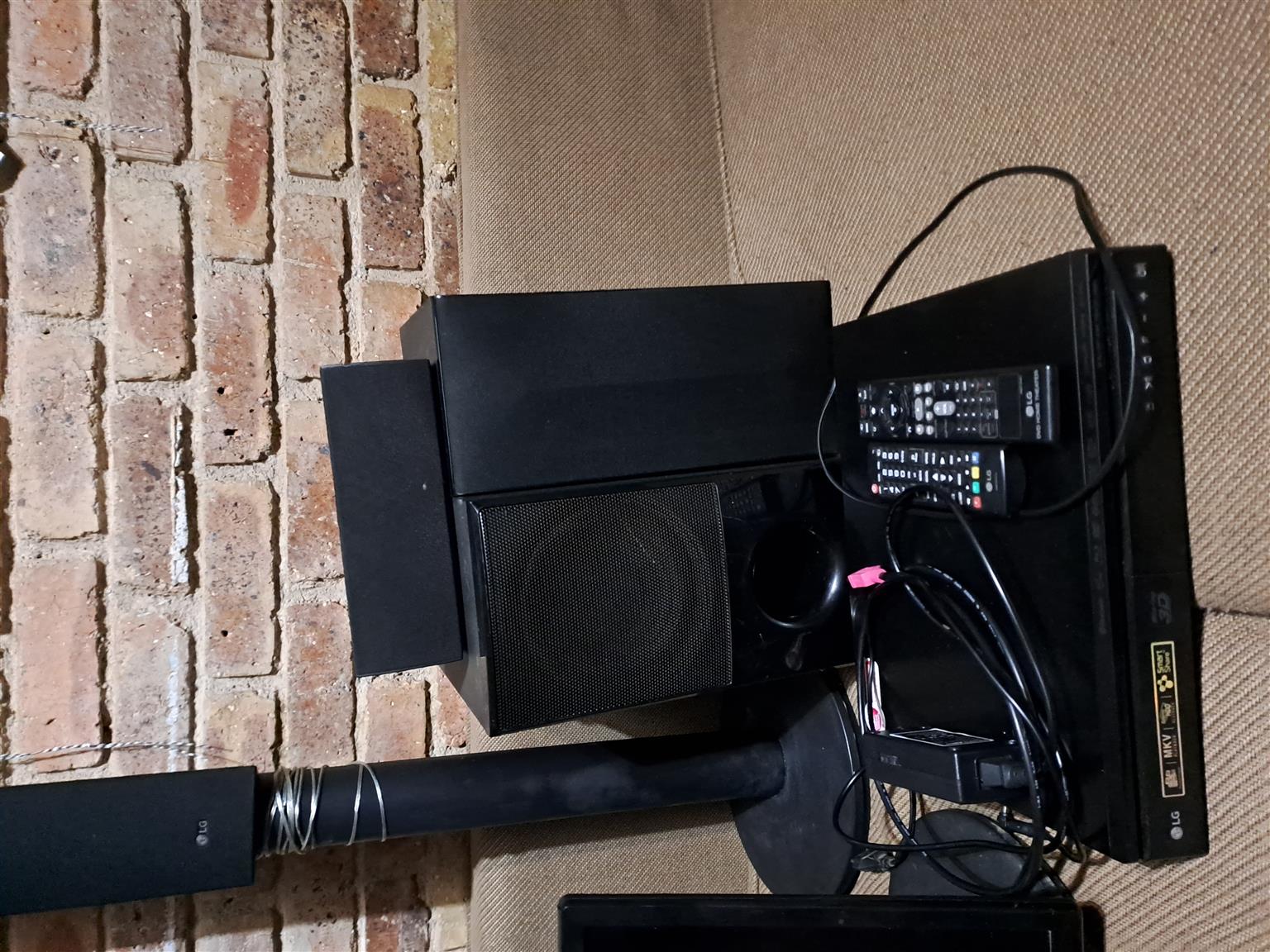 TV, Blue Ray DVD player and speakers, all in good working condition. Make LG. Price slightly neg