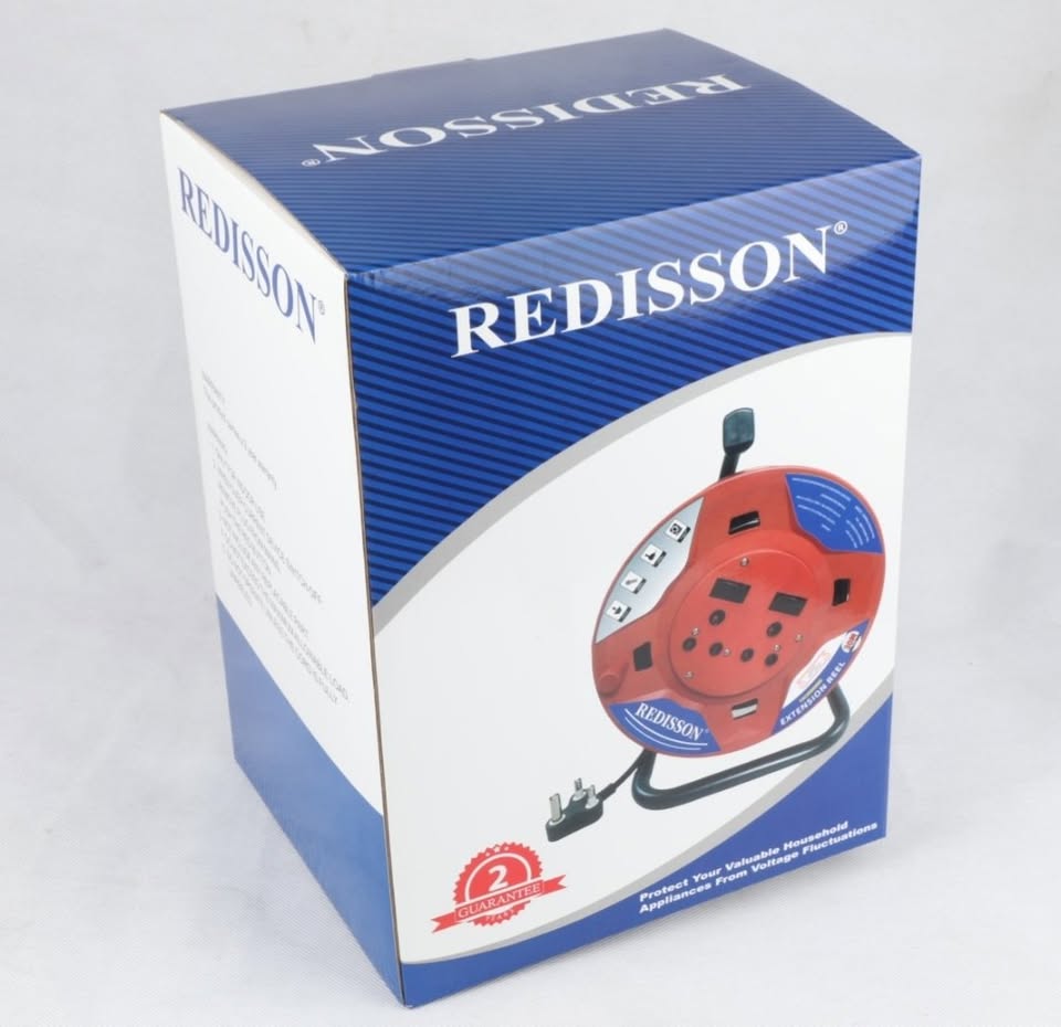 1.Retractable Design: The REDISSON extension cord reel features a retractable design, allowing you to adjust the cord length to your desired distance, ensuring a neat and organized workspace. 2.Dual Outlets: Equipped with 2 outlets, this extension cord reel provides versatile power options, enabling you to connect multiple devices simultaneously for added convenience. 3.Multi-Plug Extension: With its multi-plug extension capability, this cord reel accommodates various plug types, making it suitable for a wide range of electrical appliances and devices. 4.Tangle-Free Cord Retractor: The tangle-free cord retractor mechanism ensures smooth and hassle-free cord extension and retraction, eliminating tangling and knotting for effortless use. 5.Safe and Durable: Built to prioritize safety and durability, this extension cord reel is designed to withstand long-term use, providing reliable power distribution while keeping your workspace safe. Product Description: Experience convenience and efficiency with the REDISSON Extension Cord Reel. Featuring a retractable design and equipped with 2 outlets, this versatile cord reel offers the perfect solution for your power needs. Adjust the cord length to your desired distance with ease, thanks to the retractable design, ensuring a clutter-free workspace. The dual outlets allow you to power multiple devices simultaneously, enhancing productivity and convenience. With its multi-plug extension capability, this cord reel accommodates various plug types, making it ideal for use with a wide range of electrical appliances and devices. Plus, the tangle-free cord retractor mechanism ensures smooth operation without tangling or knotting. Safety and durability are paramount, and this extension cord reel is designed to deliver. Built to withstand long-term use, it provides reliable power distribution while keeping your workspace safe. Upgrade your power solutions with the REDISSON Extension Cord Reel and enjoy hassle-free power access whenever you need it. Delivery can be arranged via Courier at additional cost to Buyer