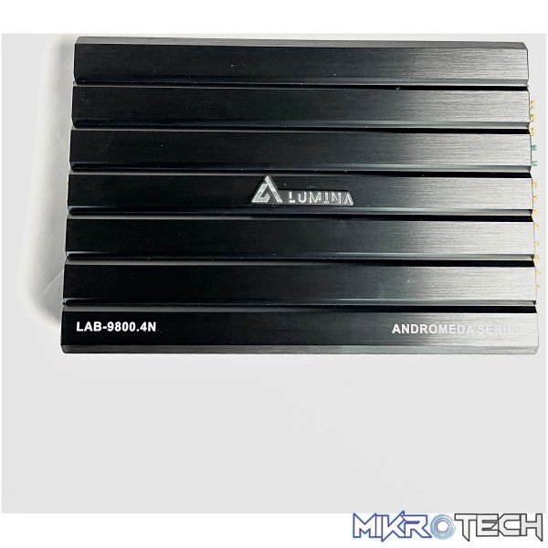 Lumina LAB-9800.4N Max Output: 9800W Output @4Ohm: 4 X 80W Output @2Ohm: 2 X 130W Output Bridged @4Ohm: 2 X 230W Frequency Response: 10Hz-2-Khz