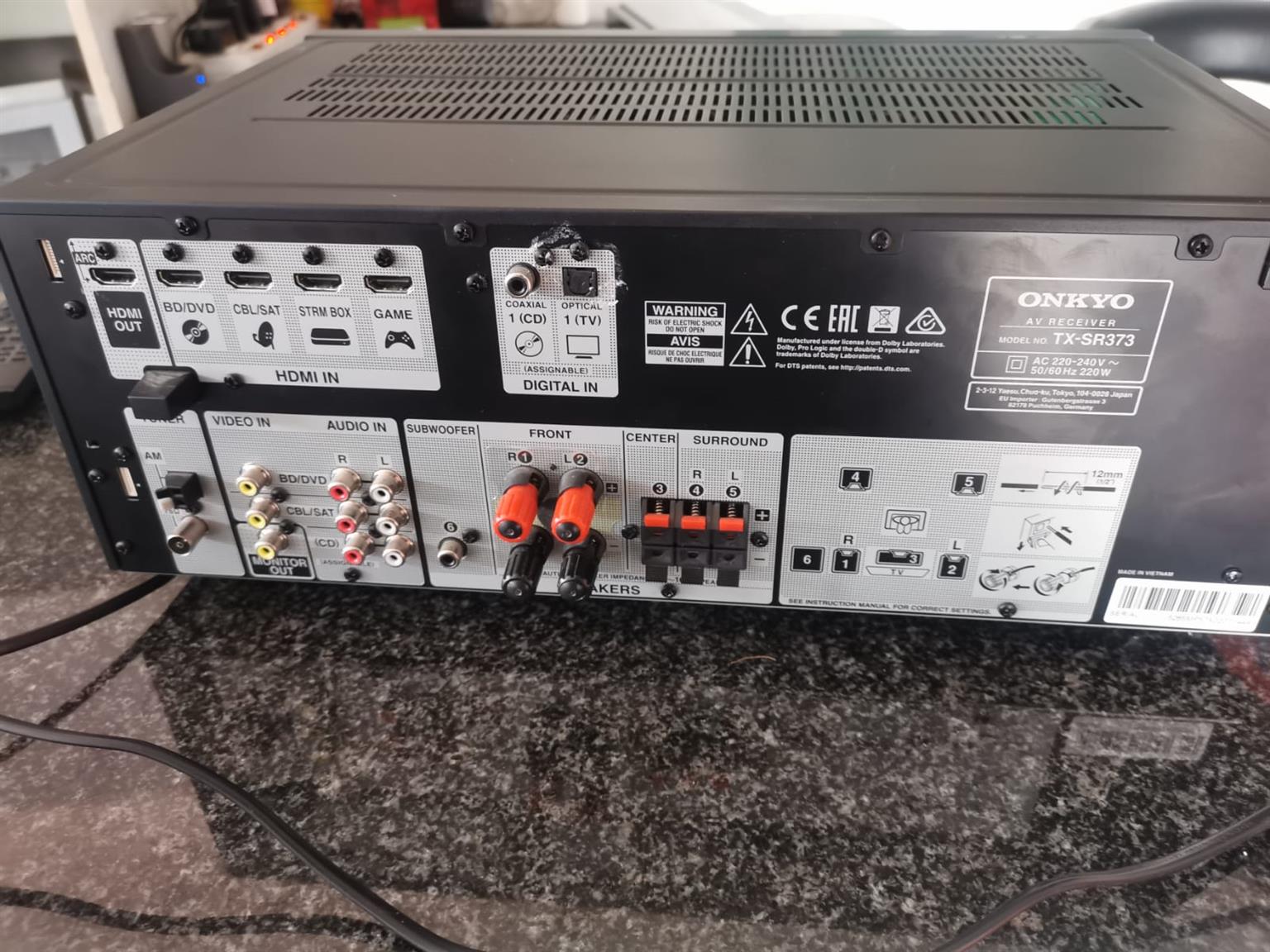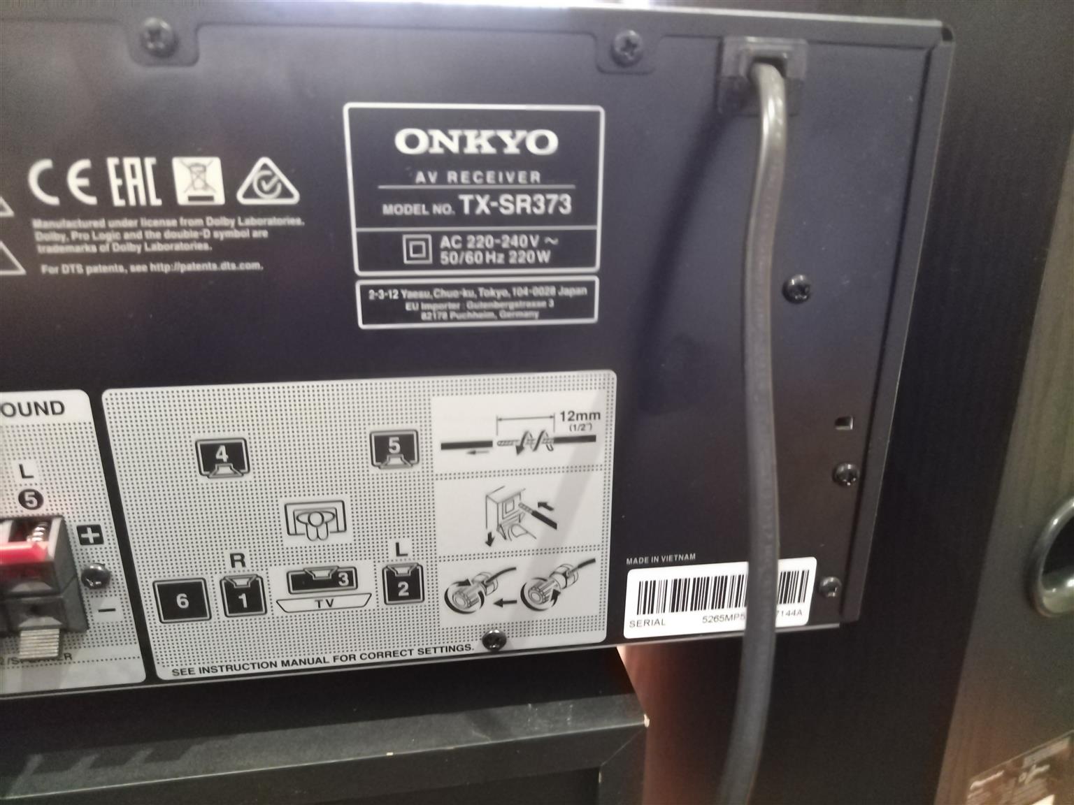 Onkyo AV Receiver Model No. TX-SR373Reason for Selling: Don't use it anymoreCondition: Good Condition.