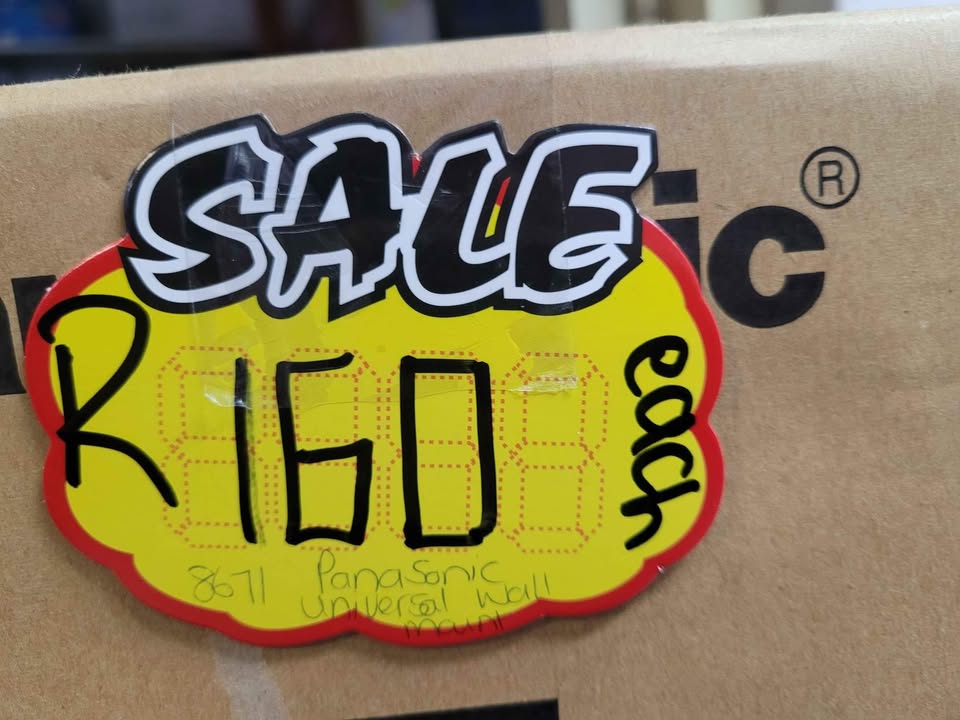 Panasonic Universal Wall Mount (8671) @R160 each Valhalla Bargain Centre, 29 Hekla Rd, Shop No 8, Valhalla Centurion. Cell No: ... WhatsApp : ..... Open from Mondays to Fridays from 08H00 until 17H00 Saturdays open from 08H00 until 11H00. Closed on Sundays & Public Holidays