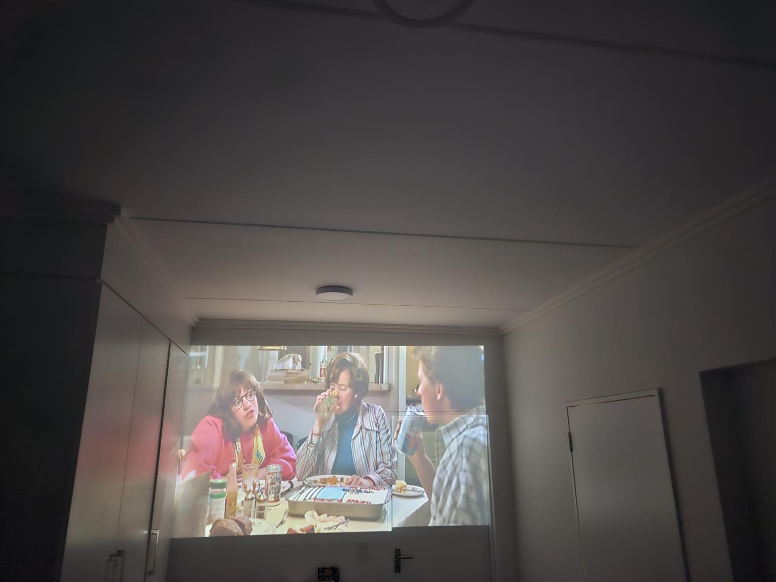 Works best on a big white wall, white sheet or cream wall