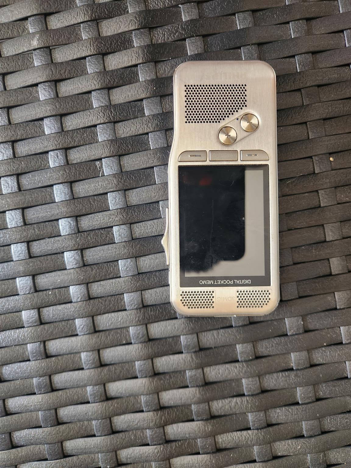 A pocket size recorder with its microphones that can be used in boardroom setting to record meeting proceedings
