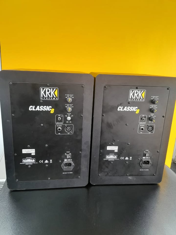 Professional Studio Monitor Building on KRK’s legacy of sonic accuracy and performance, the new KRK CLASSIC 8 powered studio monitors incorporate over 30 years of innovation from the world’s leading studio monitor manufacturer. Borrowing concepts from previous ROKIT lines—some of the most used studio monitors in the world, the CLASSIC 8 defaults to a new flat frequency solution towards more critical listening—translating into more accurate mixes. With the optional ability to engage the +2 dB KRK Bass Boost, the CLASSIC 8 can also provide the enhanced bass response and sound that music creators around the world have loved for years. The CLASSIC 8 is an active (self-powered) two-way studio monitor that utilizes a 1″ textile soft dome tweeter paired with a 8″ glass aramid woofer. The built-in power amplifiers provide a total of 100 watts of power, with a 75 watt amp driving the woofer, and a 25 watt amp for the tweeter. Classic 8 Classic 8 Features 100 watt, 8″ active studio monitor / Self-powered. Amps matched to drivers; no external amp hassles Custom bi-amped, class A/B amplifiers / Provide high headroom and low distortion Heavy-duty enclosure / Durable Front-firing port / Allows placement flexibility (i.e. near walls) without interference from a rear-firing port Dedicated low and high frequency level adjustment controls / Allows you to optimize the monitor’s response to better match the room acoustics and the user’s personal preferences 8″ glass aramid composite woofer / Rigid and lightweight driver for optimal sound quality 1″ textile soft dome tweeter / Smooth high frequency response with excellent HF extension to 34.5 kHz Bass extension to 35 Hz / Excellent low frequency response for such a compact monitor Universal connectivity with XLR, 1/4″ TRS, and RCA inputs / Interfaces with just about any mixer and/or audio interface Volume control / Allows you to fine-tune your overall monitoring level System-optimized auto-limiter / Prevents unexpected peaks from damaging the speakers and provides consistency and clarity at high volumes Foam isolation pads on bottom / Protects the surface the monitors are sitting on and provides isolation for improved clarity 106 dB Max Peak SPL