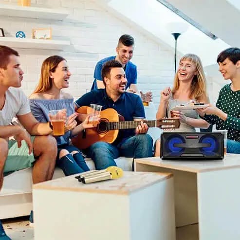 Wireless Live Dual Microphones with Bluetooth Speaker The Wireless Live Dual Microphones with Bluetooth Speaker is a versatile sound system designed for fun and convenience. With dual 10W speakers, this system delivers clear, dynamic audio, ideal for karaoke sessions, family entertainment, outdoor events, and gatherings with friends. It supports a range of connectivity options, including Bluetooth, TF card, AUX, and U-disk, making it easy to play your favorite music and sing along. The included wireless microphones feature unidirectional condenser technology for crisp vocal quality, making this a go-to setup for on-the-go entertainment.